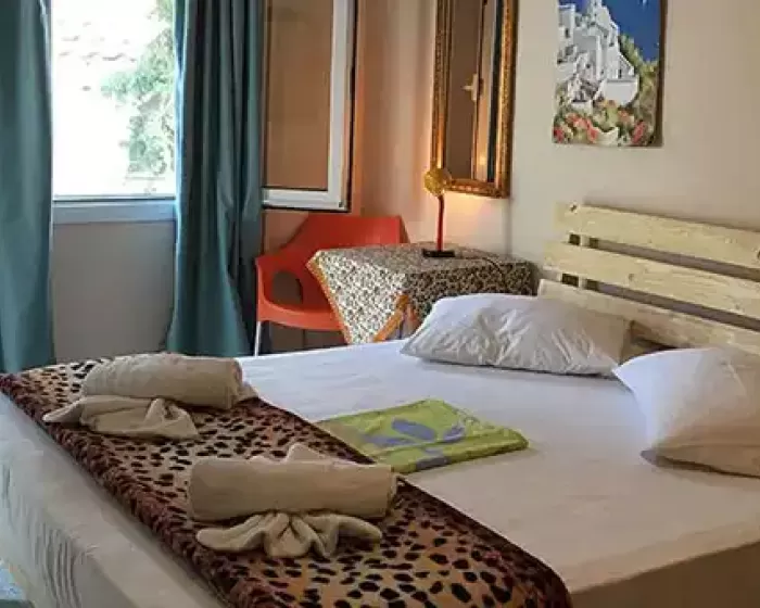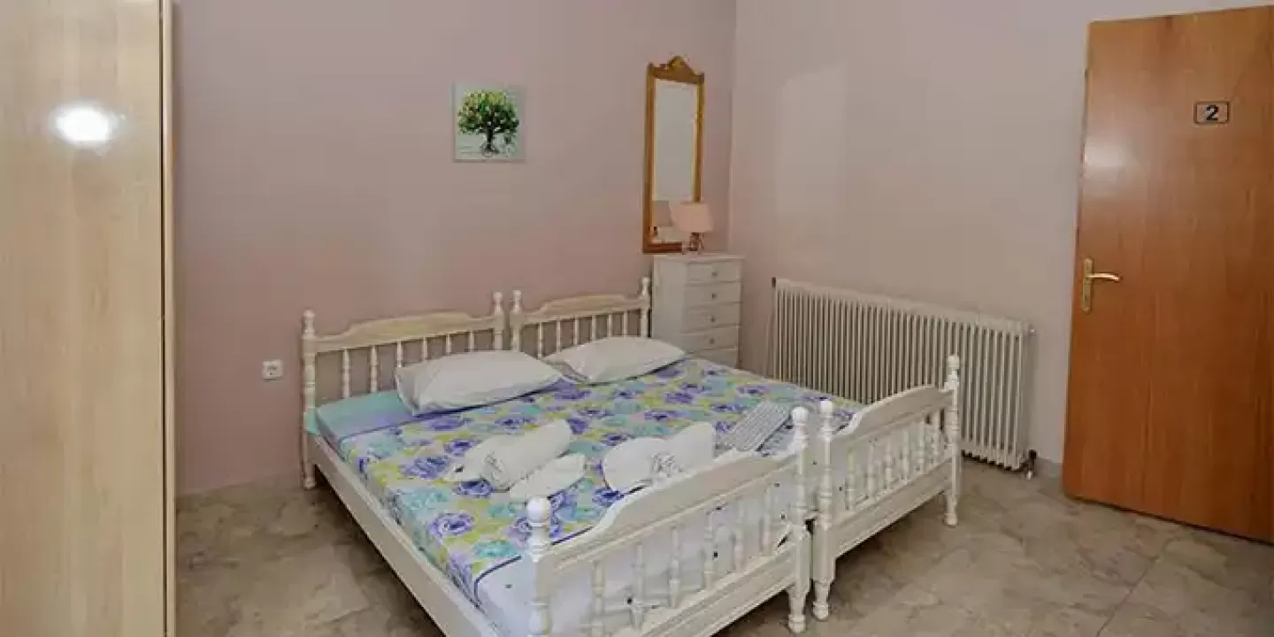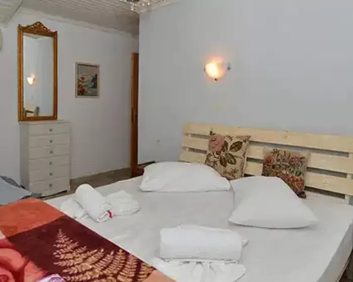 Poseduje dvokrevetne studije i dvokrevetne sa pomoćnim ležajem i četvorokrevetni apartman.