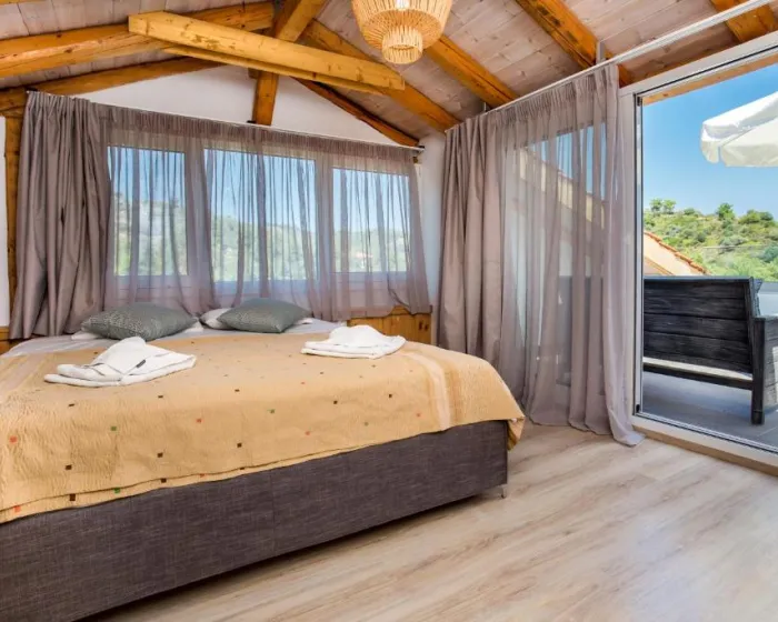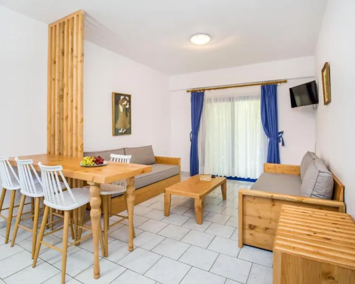 Apartments SV - dvosoban apartman, dnevna soba sa kuhinjom, sofa na razvlačenje i fotelja, odvojena spavaća soba sa francuskim ležajem, klima (uz doplatu na licu mesta).