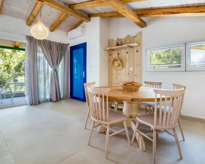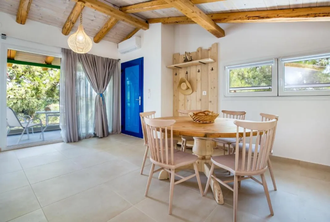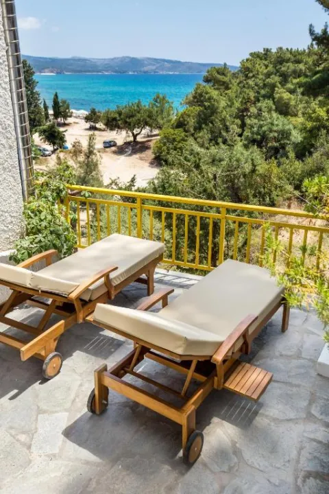 Vila Rodon House Tasos je udaljena oko 50 metara od plaže Tripiti i oko 3 kilometara od grada Limenarije. Gotovo sve smeštajne jedinice u ovim objektima su medjusobno različite, a ima dvokrevetnih studija, četvorokrevetnih apartmana i trosobnih apartmana za 5-7 osoba. Čišćenje i zamena peškira obavlja se 3 puta nedeljno, a zamena posteljine jednom nedeljno.
