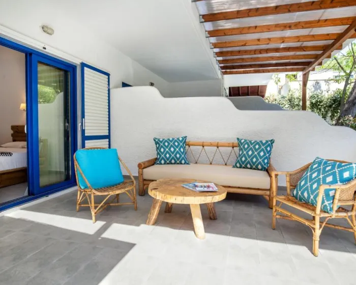 Sobe se sastoje od dnevnog boravka, kuhinje i kupatila. Klima uređaj obezbeđuje prijatnu temperaturu. Gosti mogu uživati u pogledu na more sa balkona ili terase. Na raspolaganju su odvojene spavaće sobe, a za decu se mogu obezbediti kreveci. Sef i mini-bar su takođe dostupni. Čajna kuhinja je opremljena frižiderom i aparatom za kafu i čaj. Telefon, televizor i WiFi omogućavaju dodatnu udobnost. Kupatila imaju tuš i fen za kosu.
