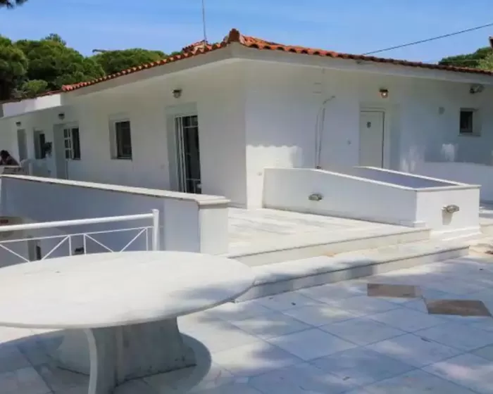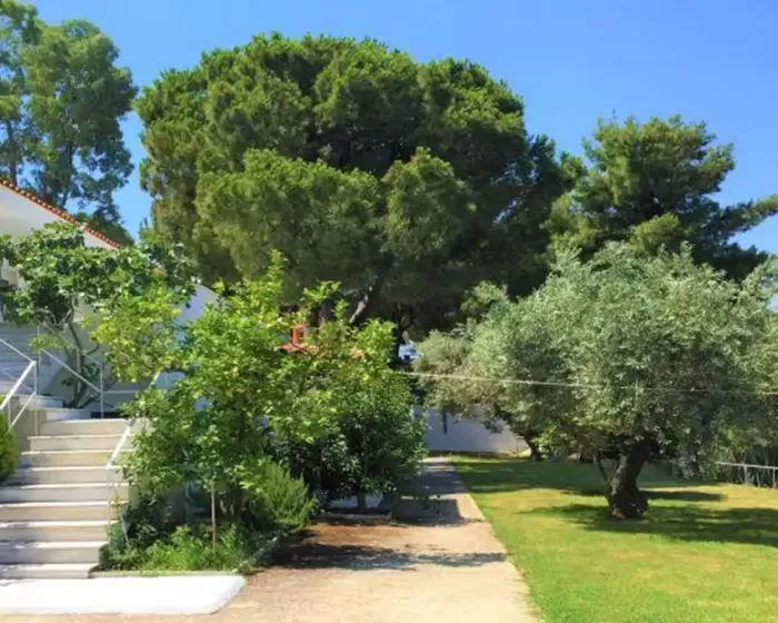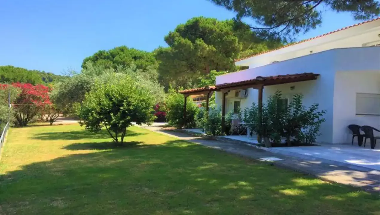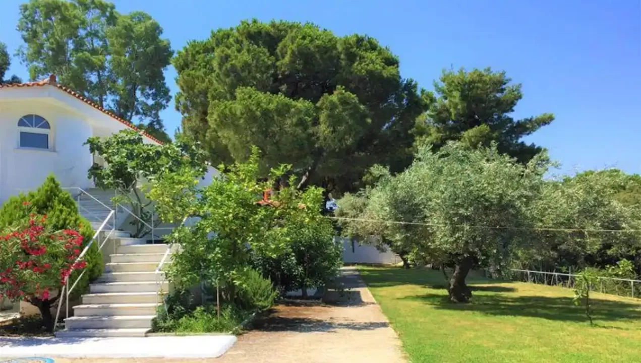 Vila Sofia Agia Paraskevi se nalazi na oko 150 metara udaljenosti od Kolios plaže (peščana plaža, nalazi se u maloj uvali, zaštićena je od vetra) i na oko 7 kilometara od aerodroma i 6 kilometara udaljenosti od grada Skijatosa. Pešačka staza kroz dvorište vile vodi direktno do peščane plaže Kolios, sledeća plaža je Vromonlimnos i udaljena je oko 450 metara. Supermarket i autobusko stajalište gradskog prevoza nalaze se na oko 600 metara od smeštaja. Vila je okružena zelenilom i smeštena je u mirnom delu letovališta.