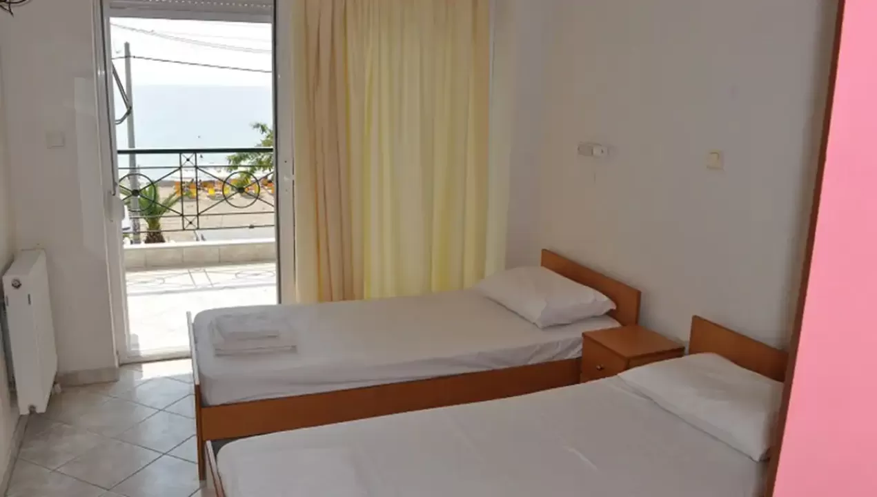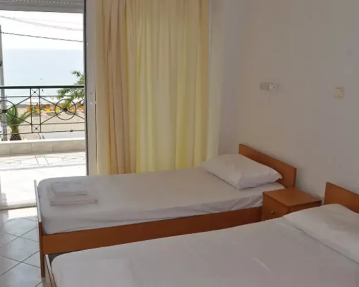 Kuhinjski deo sadrži ugradni šporet sa dve ringle, frižider, sudoperu i elemente sa osnovnim kuhinjskim inventarom.  Kupatilo ima tuš kadu.  Svi apartmani imaju TV prijemnike sa grčkim kanalima i terase sa direktnim pogledom na more. Smeštajni objekat ne poseduje internet wireless i obezbedjeno parking mesto.peškiri, toalet papir i sapun nisu sastavni deo smeštajne jedinice.