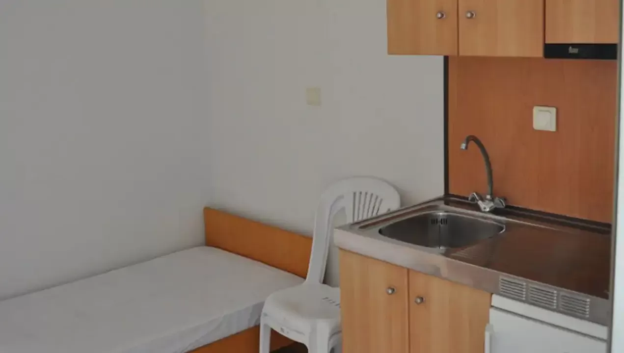 apartman:  dva singl ležaja nalaze se u sobi, a jedan singl ležaj u kuhinji.