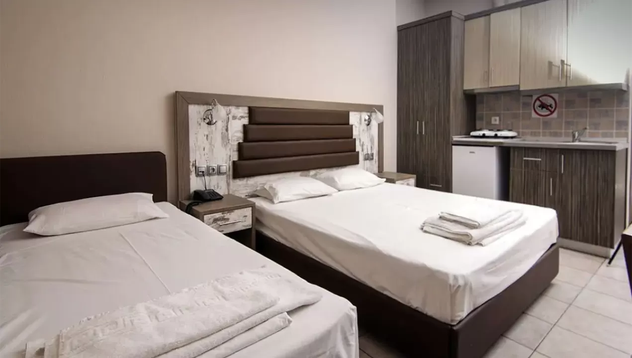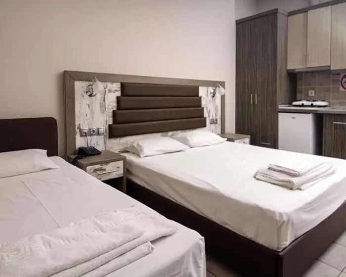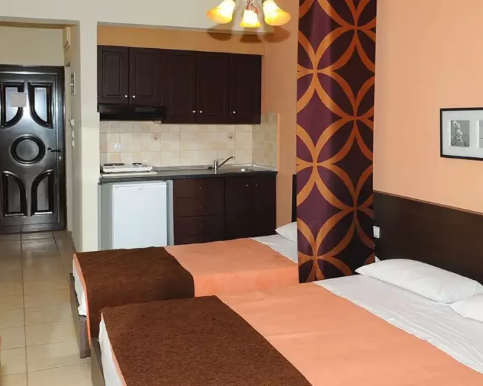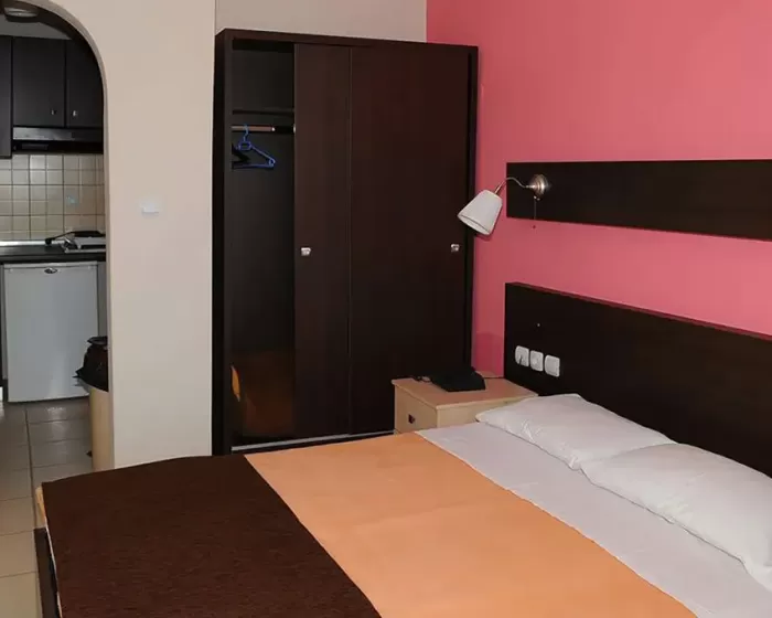 Standard studio sa francuskim ležajem i jednim odvojenim ležajem, mogu ugostili ili dve odrasel oosbe i dete ili tri odrasle osobe.