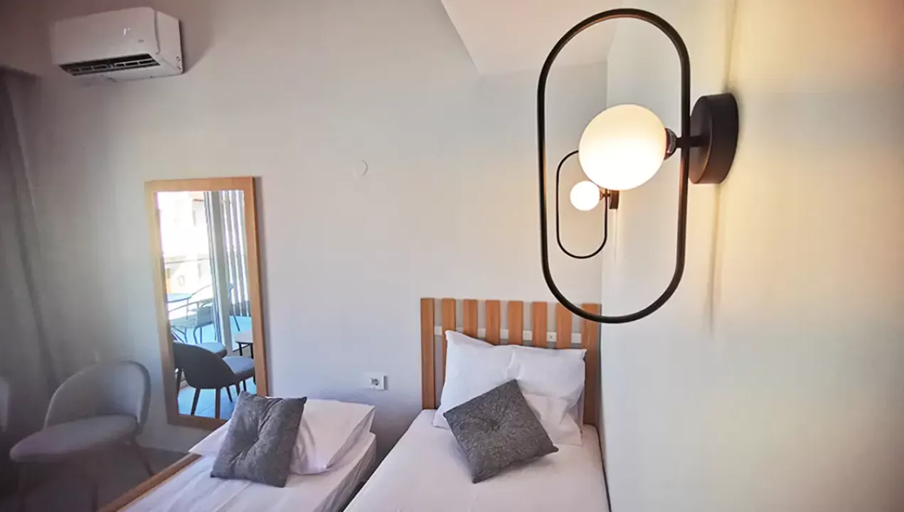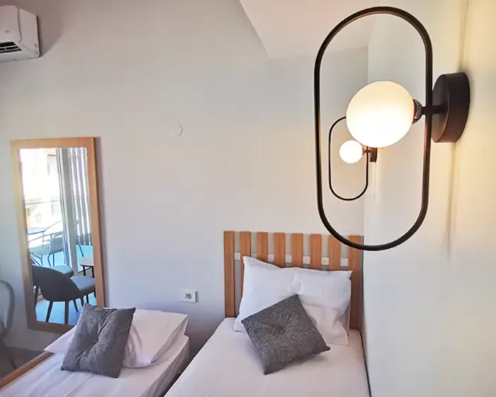 Nova kuća u našoj ponudi primila je prve goste u julu 2021. Izuzetno moderan i komforan smeštaj nalazi se u novom delu Sartija na samo 40m od mora. U ponudi su studiji za dve do četiri osobe u visokom prizemlju, kao i studiji sa galerijom za dve do četiri osobe. Studiji sa galerijom na donjem nivou imaju dva singl kreveta koja mogu biti spojena (nisu iste visine) ili razdvojena. Na galeriji se nalazi francuski krevet. Na oba nivoa postoji klima uređaj i televizor sa SAT TV.