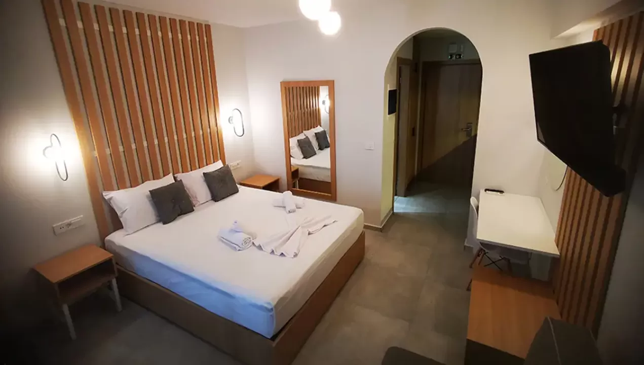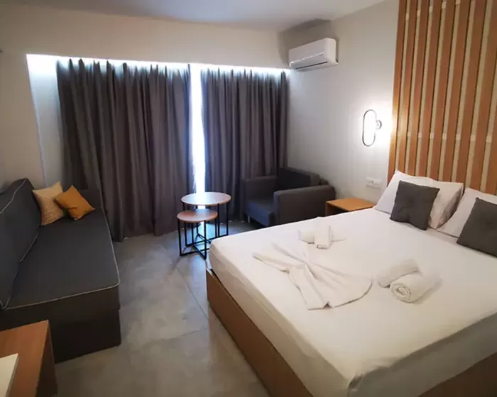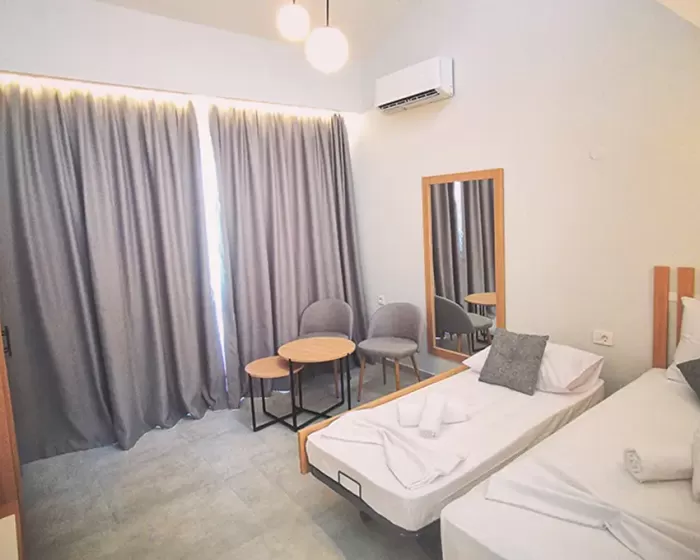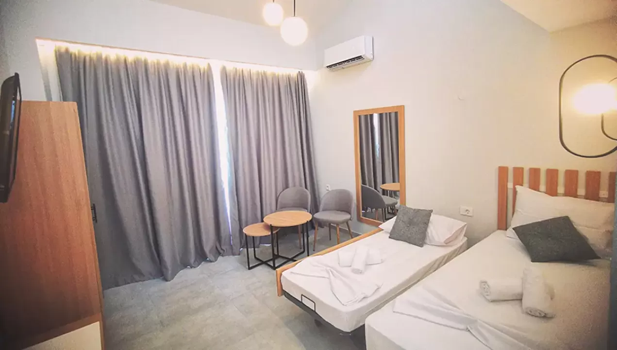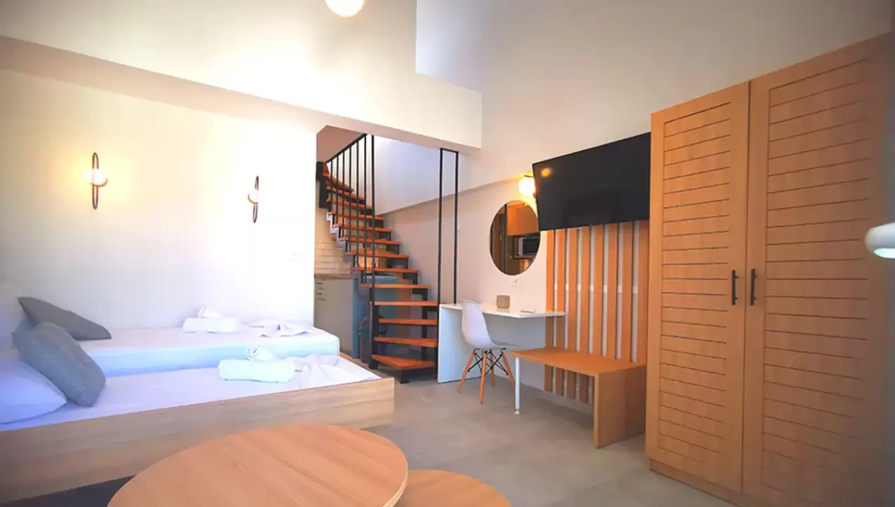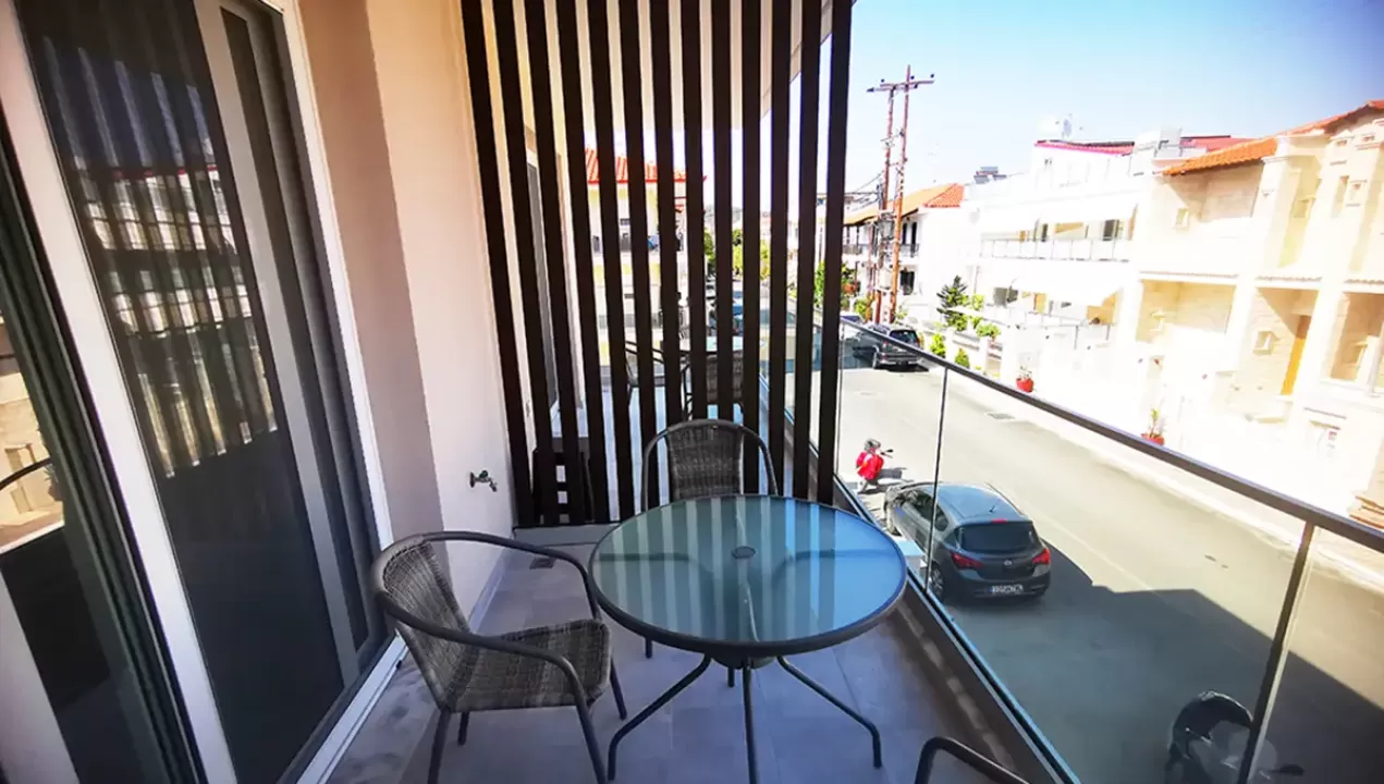 Vila Sunshine Sarti se nalazi na kraju novog dela Sartija, odmah pre velikog fudbalskog igrališta, od plaže udaljena 30 metara. U neposrednoj blizini vile se nalazi veći broj beach barova i restorana, a market je udaljen manje od 15 metara od ove tražene vile. Do četiri osobe mogu da se smeste u studije sa galerijom koje su u ponudi agencije za ovu sezonu.