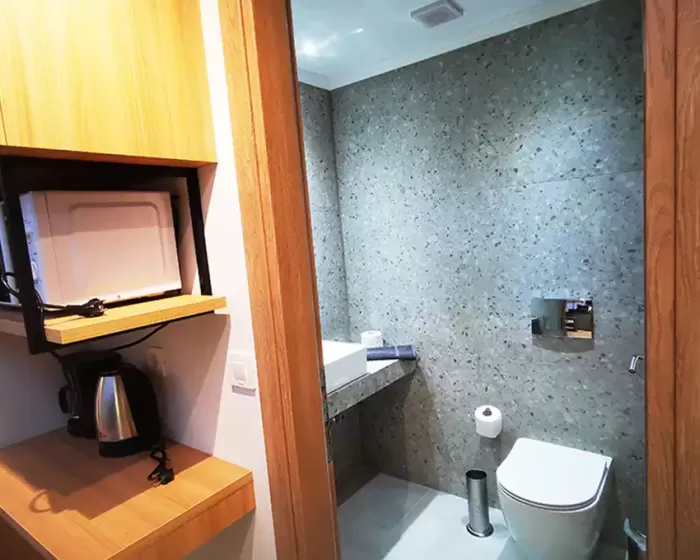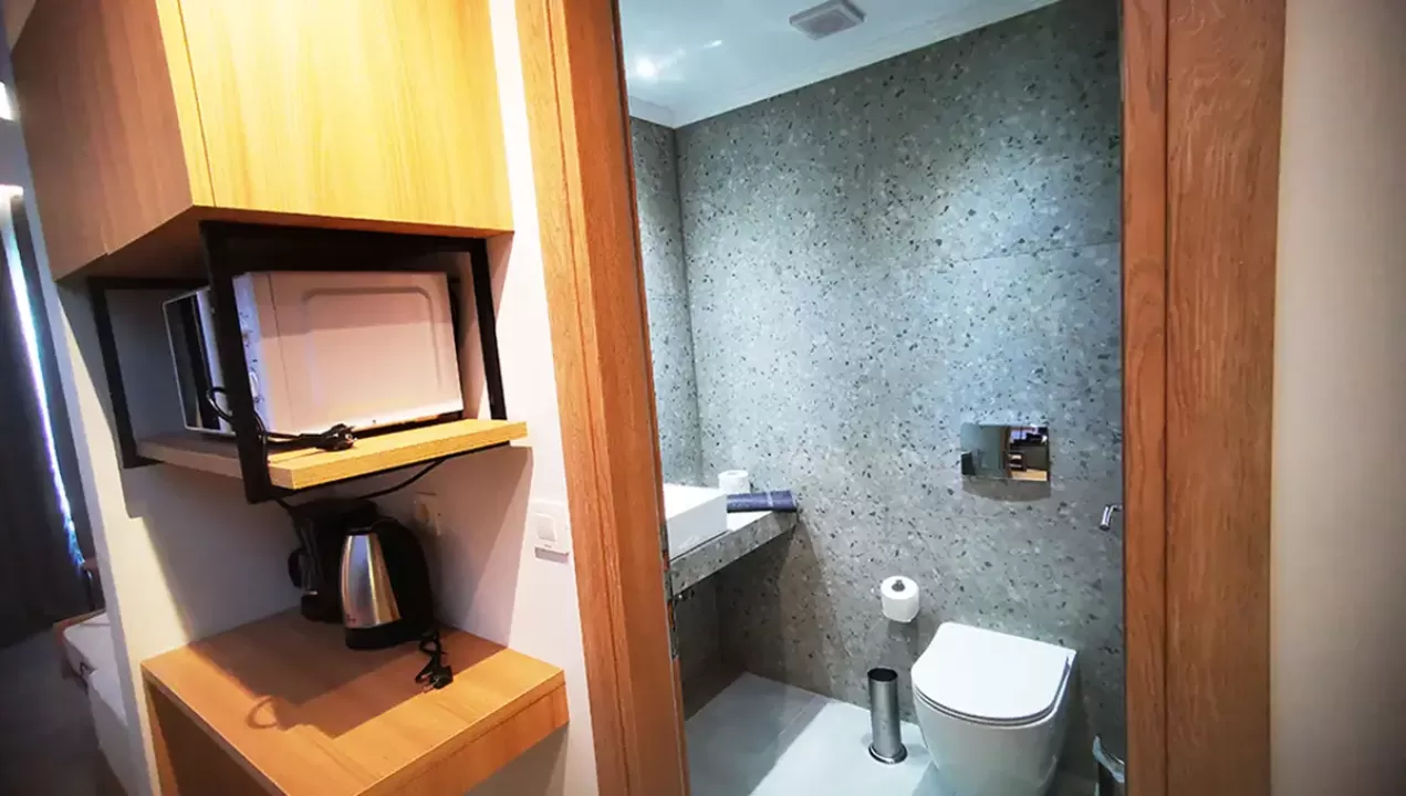 kupatilo, opremljena mini-kuhinja, mikrotalasna, frižider, klima-uredjaj, SAT TV, balkon sa garniturom za sedenje