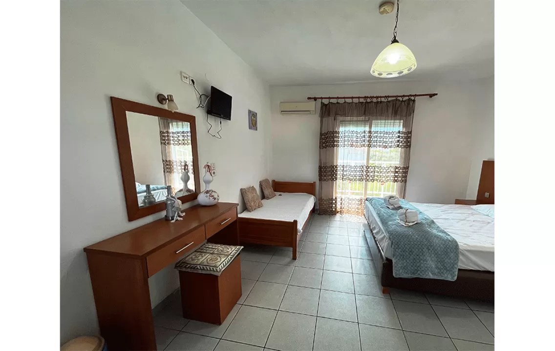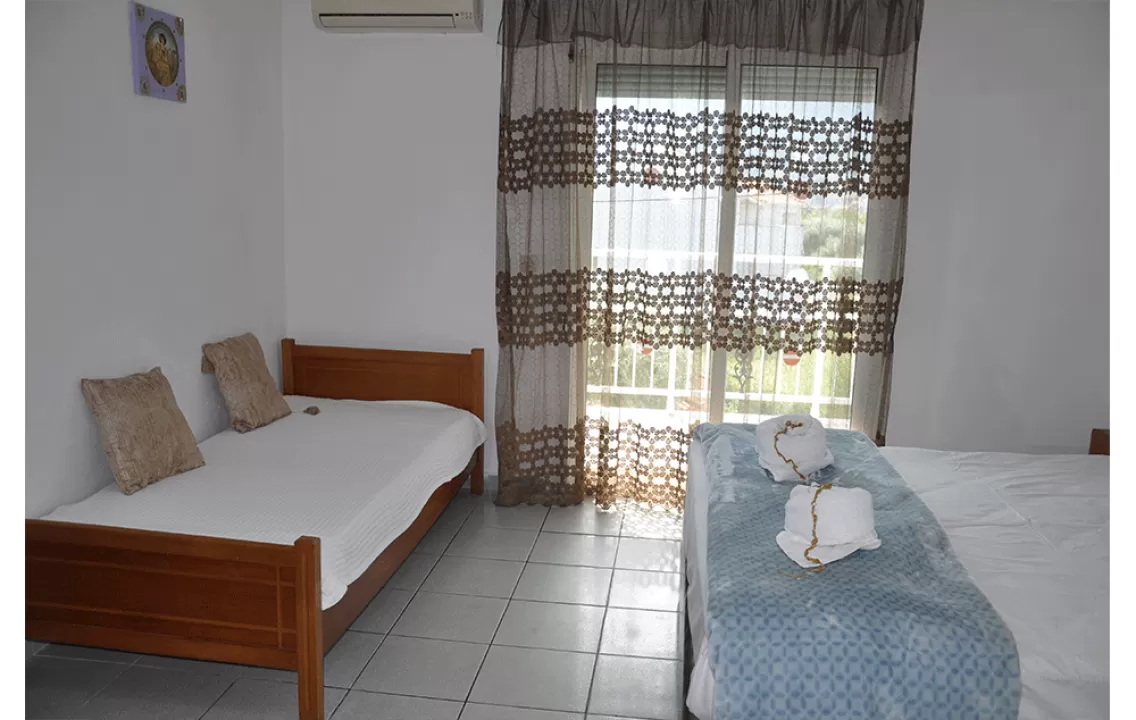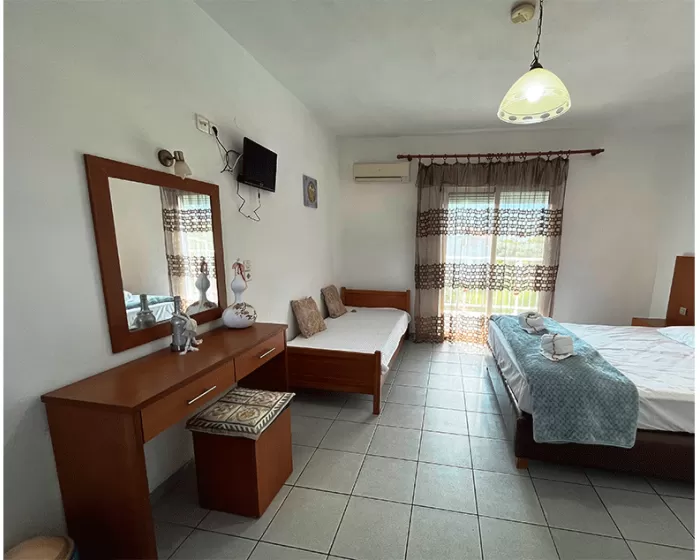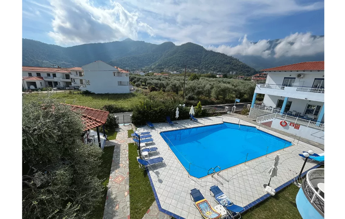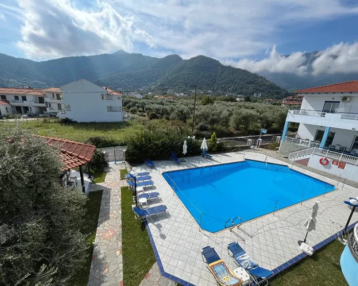 Vila Suzie Tassos Golden Beach je udaljena oko 150m od jedne od najlepših plaže Tasosa, Zlatne plaže (Golden beach) Svaki studio poseduje čajnu kuhinju, kupatilo/wc, peškire, terasu, WiFi internet, TV, klima uređaj. Najbliži market je udaljen 100m od vile.
