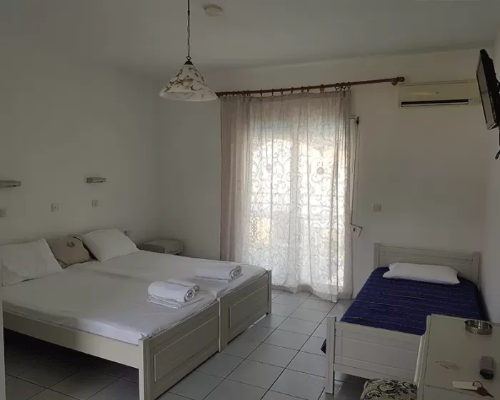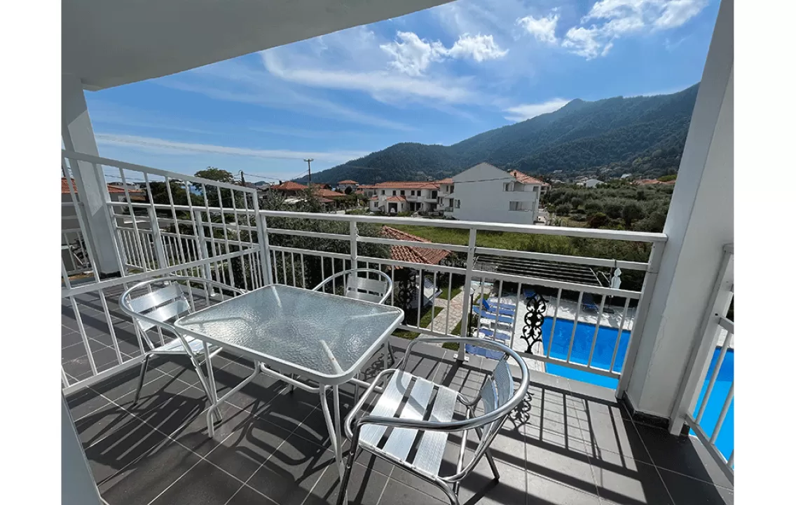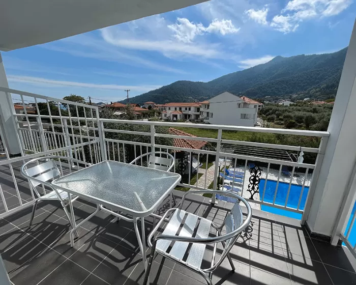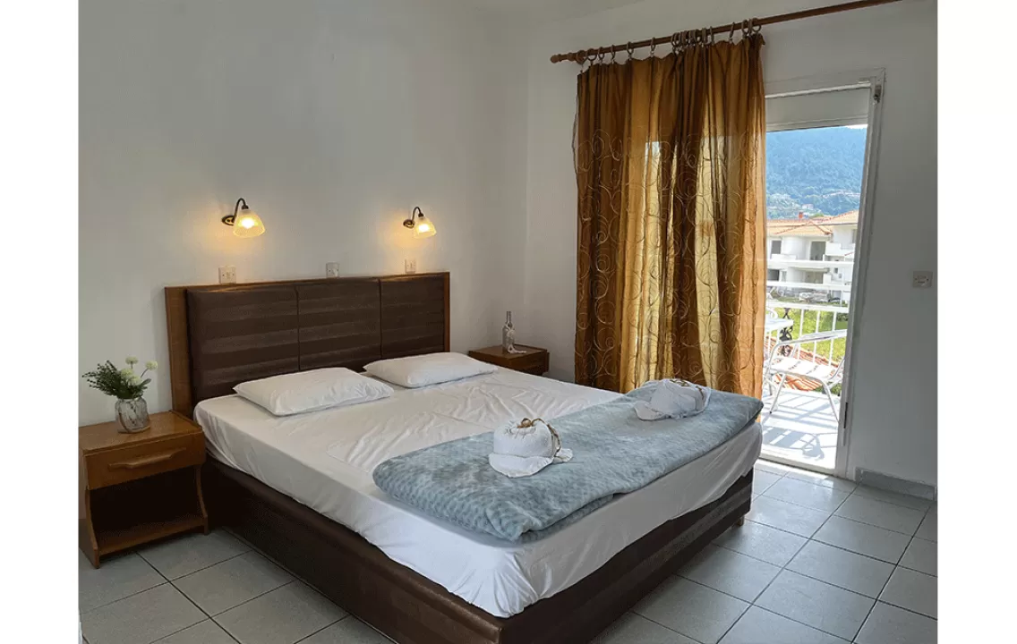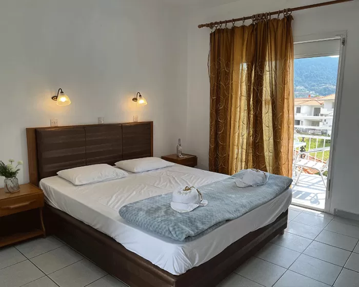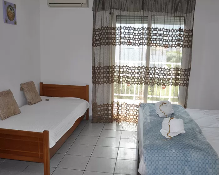 Vila Suzie Tassos Golden Beach je udaljena oko 150m od jedne od najlepših plaže Tasosa, Zlatne plaže (Golden beach) Svaki studio poseduje čajnu kuhinju, kupatilo/wc, peškire, terasu, WiFi internet, TV, klima uređaj. Najbliži market je udaljen 100m od vile.