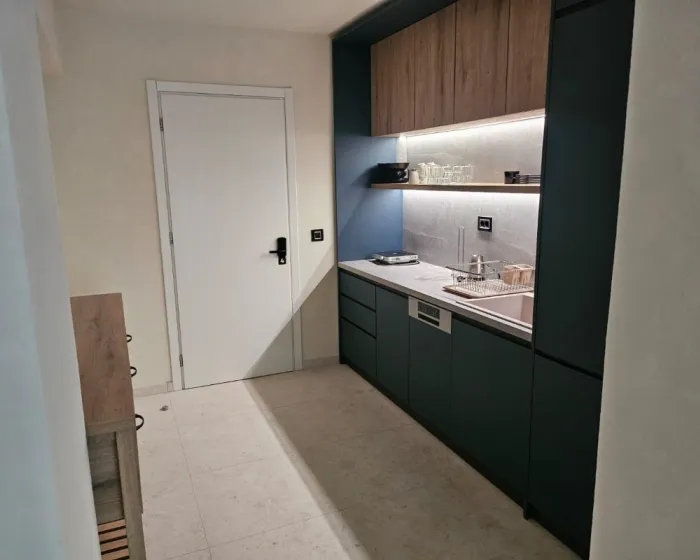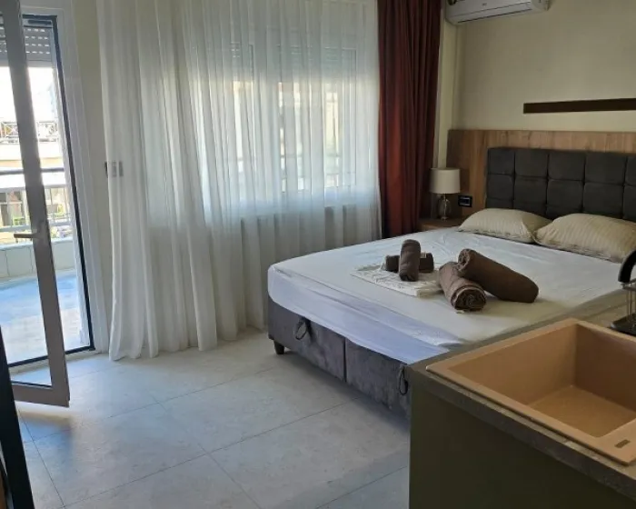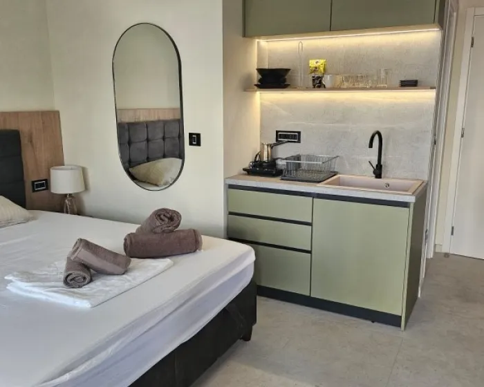 A - apartman / prostorija koju čini čajna kuhinja (obično bez rerne) opremljena osnovnim posuđem sa naznačenim brojem osnovnih ležajeva i odvojena prostorija sa naznačenim brojem osnovnih ležajeva, kupatilo, balkon ili terasa.