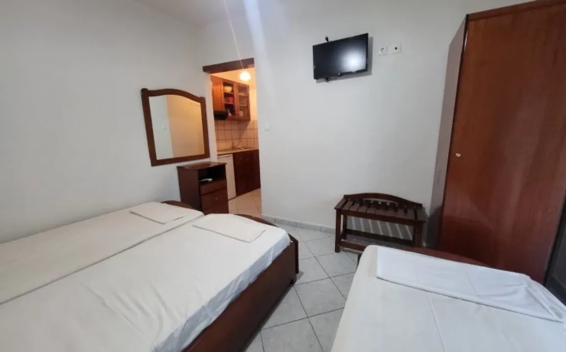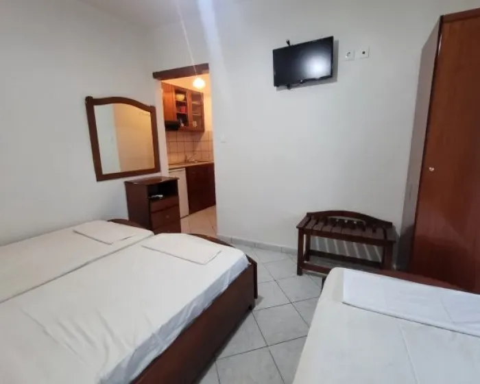 Raspolaže dvokrevetnim, trokrevetnim i četvorokrevetnim studijima raspoređenim na prvom, drugom i trećem spratu, kao i četvorokrevetne apartmane. Neke od smeštajnih jedinica imaju bočni pogled ka moru. Vila je na odličnoj lokaciji, ali skromnijeg kvaliteta.