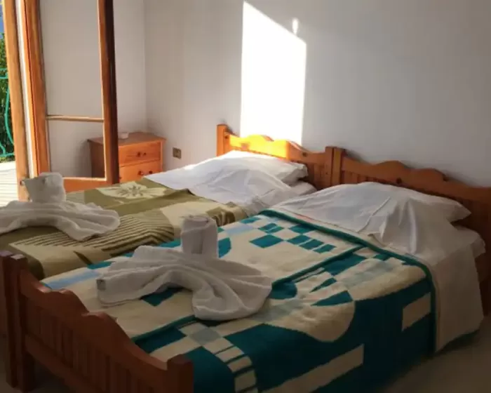 Dva deteta do 9.99 godina starosti mogu koristiti jedan standardni ležaj.Jedno dete do 2.99 godina može da boravi u smeštaju bez sopstvenog ležaja.Tip smeštaja:1/2 garsonjera - u jednoj prostoriji mini kuhinja, u drugoj prostoriji dva obična ležaja.1/3 apartman - u jednoj prostoriji mini kuhinja i sofa, u drugoj prostoriji dva obična ležaja.1/4 duplex apartman - u jednoj prostoriji mini kuhinja, u drugoj prostoriji dva obična ležaja, u trećeoj prostoriji jedan bračni ležaj.U pojedinim slučajevima moguća su odstupanja mera ležaja od našeg standarda. Grčki standard za ležaj je 185 cm sa 75-80 cm, a bračni ležaj (dve osobe) 185-200 cm sa 120-155 cm.