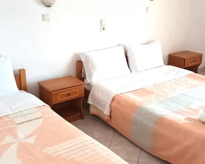 Apartmani imaju dve odvojene prostorije, spavaću sobu u kojoj se nalazi francuski krevet i dnevnu sobu u kojoj su kuhinja sa trpezarijskim stolom i stolicama i dva velika kauča na razvlačenje.