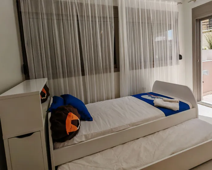 Vila Ulli Sarti se nalazi na oko 140 metara od mora, na uzvišenju pored crkve. Osim gradske plaže, u blizini je i jedna manja uvala sa stenama i peskom. Na prvom spratu nalazi se nov moderan, luksuzan duplex. Prostrana odlično opremljena kuhinja (šporet, mikrotalasna, mašina za sudove, kuvalo) je sastavni deo prostranog dnevnog boravka gde se nalazi trosed na rasklapanje za 2 osobe. Jedna spavaća soba ima francuski krevet i druga spavaća soba ima klasičan krevet sa još jednim fioka klasičnim krevetom. Jedna terasa gleda ka mirnoj ulici, druga prostrana terasa gleda između zgrada. Kuća ima signal za besplatan bežični internet, SAT TV i klima uređaje (dnevna soba i jedna spavaća soba) čije je korišćenje uključeno u cenu. Gostima je na raspolaganju usluga pranja veša koja se može dogovoriti sa domaćinima kuće. Prilikom zamene posteljine i peškira organizovano je čišćenje duplexa.