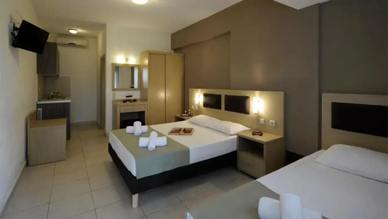 Mnoge jedinice imaju pogled na more, što stvara posebno lep ambijent. Sobe imaju bračni krevet i kauč na razvlačenje. ViFi (bez doplate) je standardan u sobama. Hotel ima sobe za nepušače.