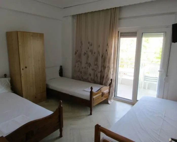 Vila Vasilios Maria Nei Pori se nalazi na oko 50 metara udaljenosti od plaže, u prvom redu kuća od mora. Raspolaže lepo održavanim dvokrevetnim i trokrevetnim studijima, četvorokrevetnim, petokrevetnim i šestokrevetnim apartmanima kao i četvorokrevetnim i petokrevetnim dupleks apartmanima. Studiji su smešteni u prizemlju dok se jedan od njih nalazi na poslednjem spratu, ima direktan pogled na more i cenovno je odvojen. Apartmani i dupleks apartmani se nalaze na prvom i drugom spratu i pojedini imaju pogled na more.