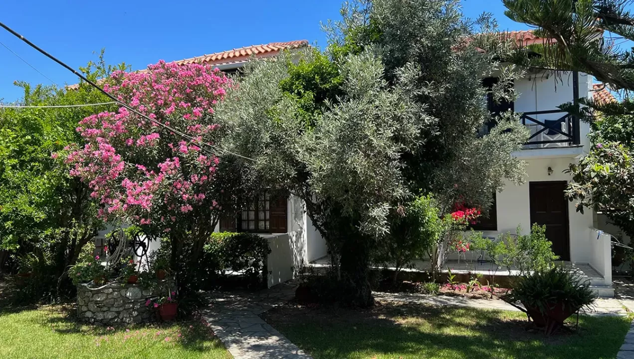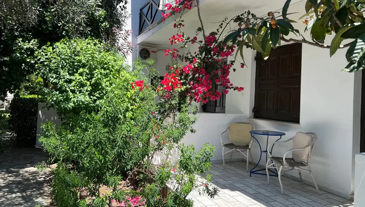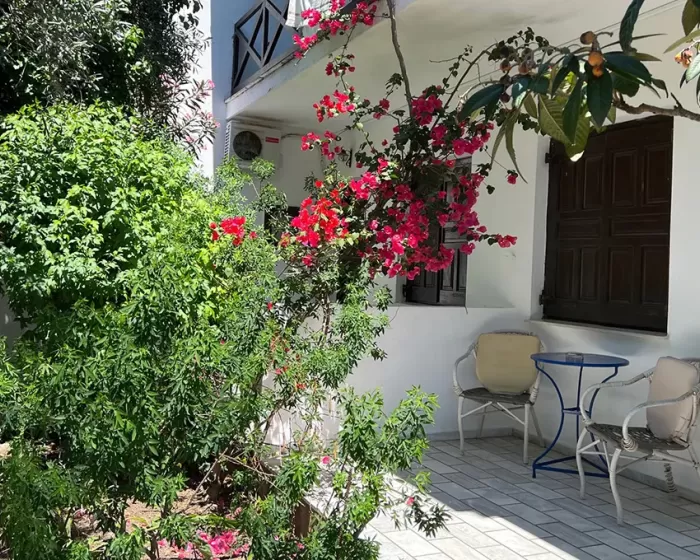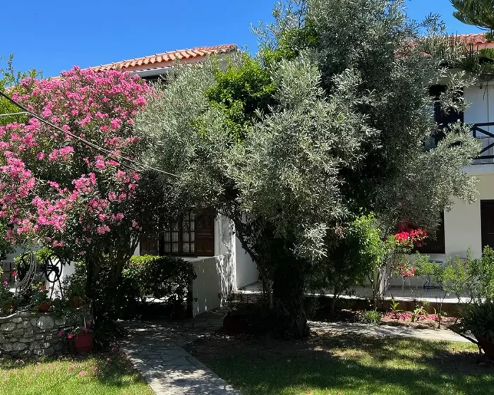 Vila Vasilis Skiatos grad Skiatos se nalazi u širem centru grada Skiatos, na oko 550 metara od ulaska u centralnu zonu grada. Autobuska stanica, odakle se autobusom lako stiže na sve prelepe plaže na Skijatosu, udaljena je oko 250 metara od samog smeštaja. Vila se nalazi u mirnom delu, dok se sam kompleks sadrži od prelepog dvorišta sa mnogo prelepog cveća i zelenila.