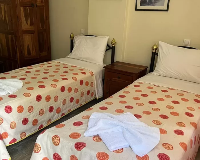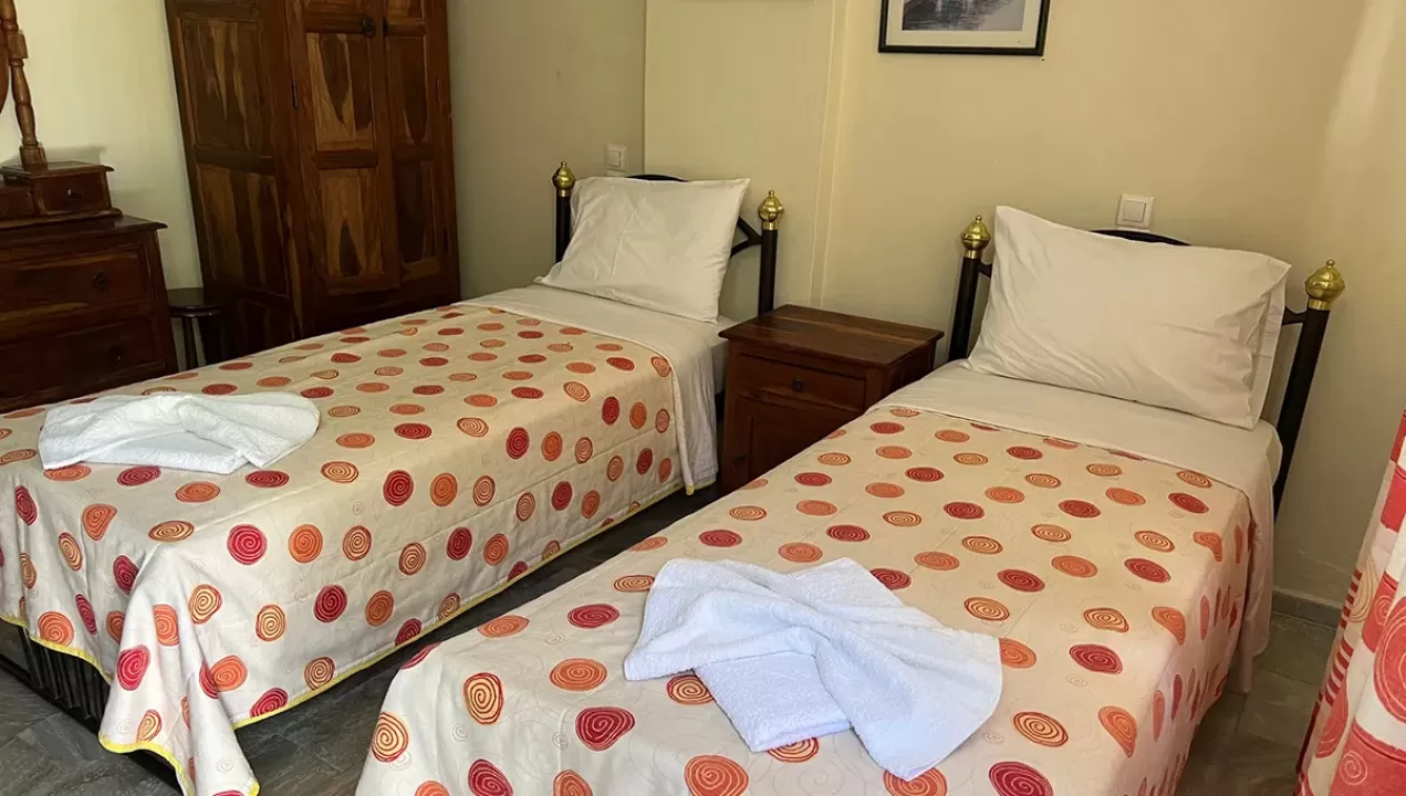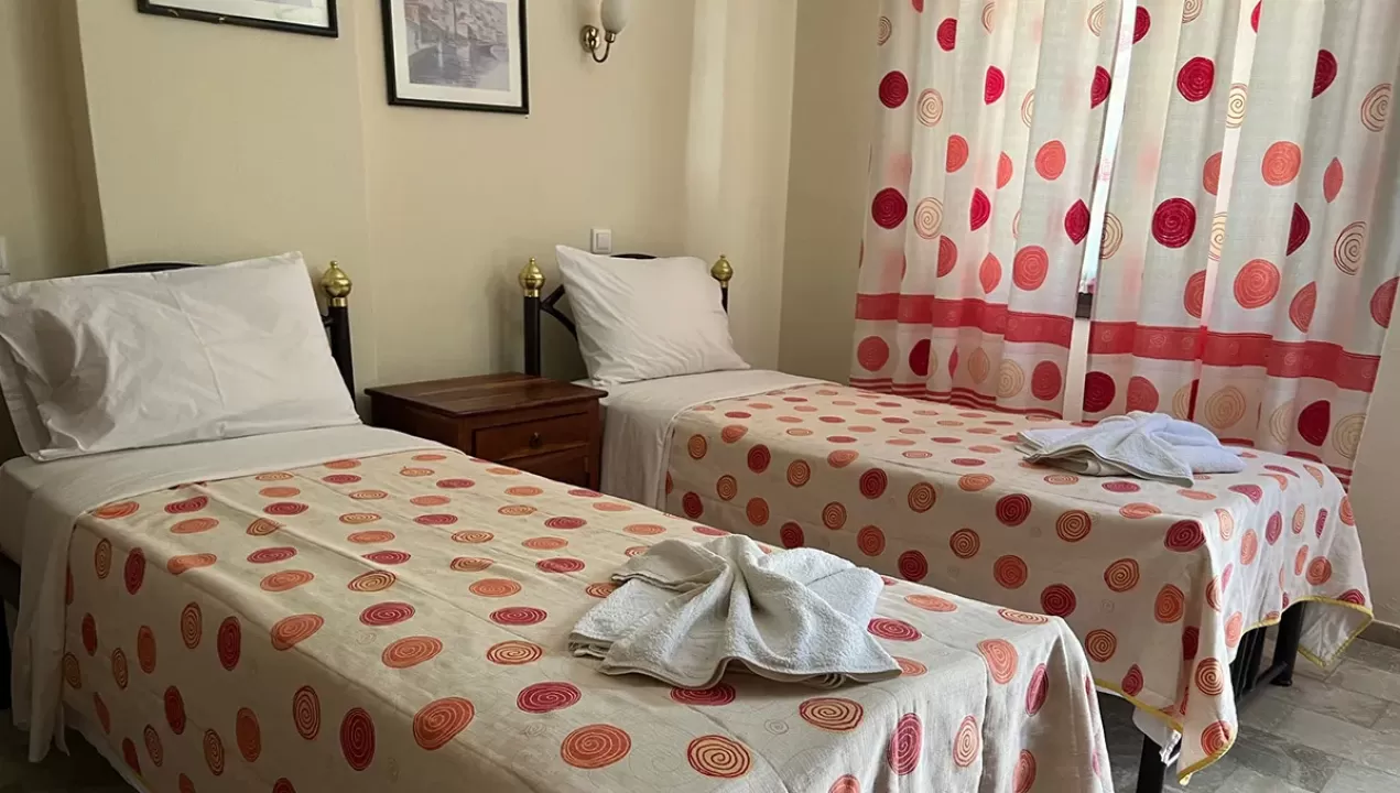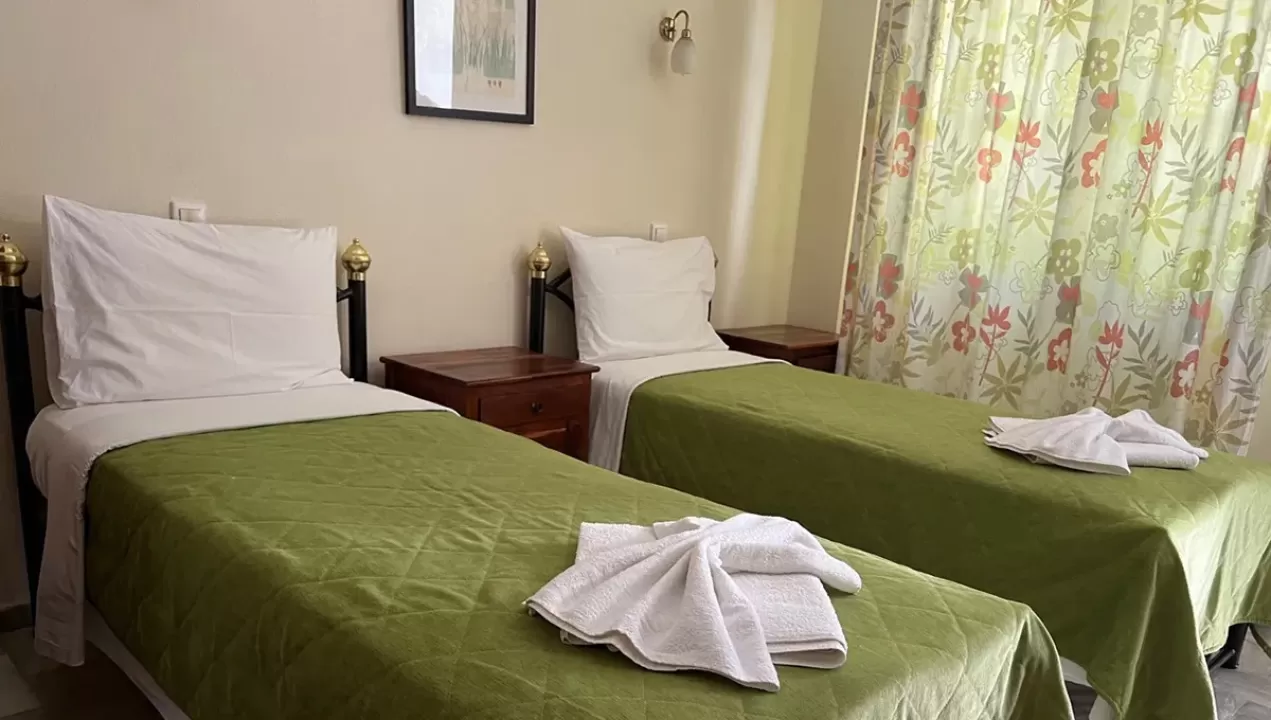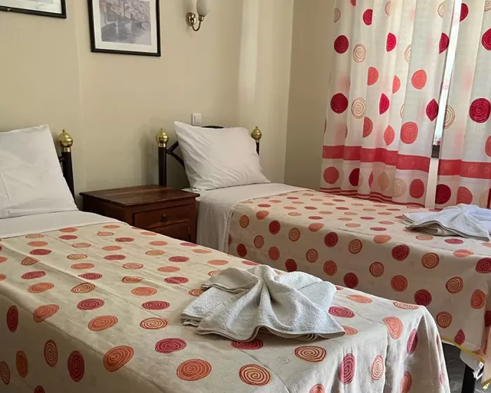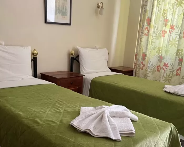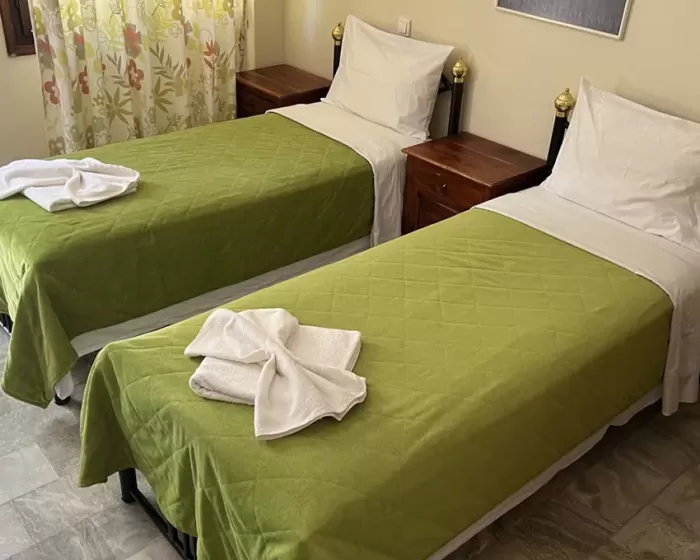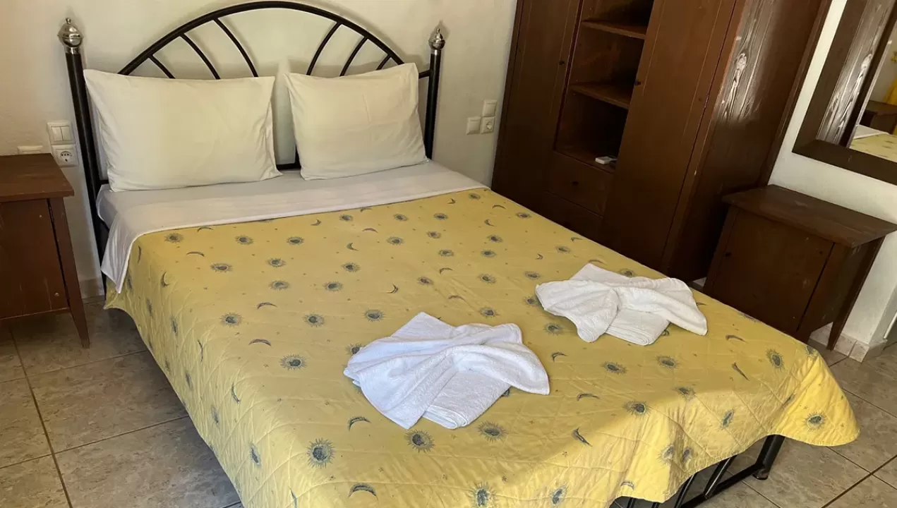 Tip smeštaja:1/2 studio: dvokrevetni studiji se nalaze u glavnoj zgradi i u bungalovima, i sastoje se od dva singl ležaja ili Francuskog ležaja, jedan ili dva noćna stočića pored kreveta, orman, veliki sto sa ogledalom, klima uređaj, TV i kuhinjskog dela koji se sastoji od rešoa sa dve ringle, mikrotalasnom pećnicom i aspiratorom, kao i priborom za ručavanje za dve osobe. Svaki studio poseduje svoje kupatilo sa kadicom i tuš zavesom. Ispred studija se nalazni zaseban terasni deo sa stolom i dve stolice.