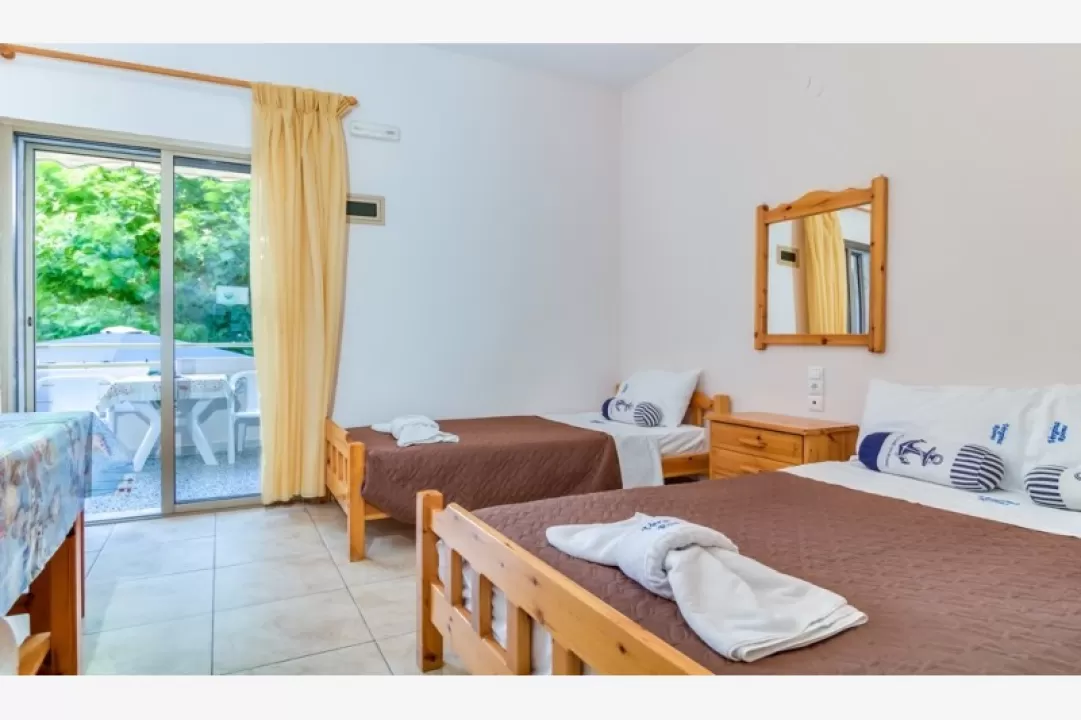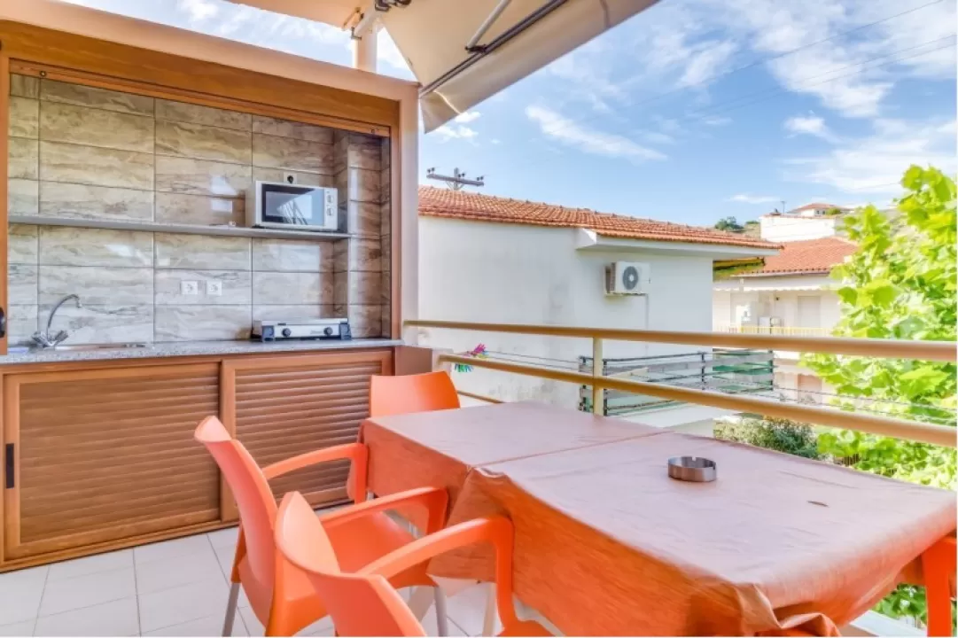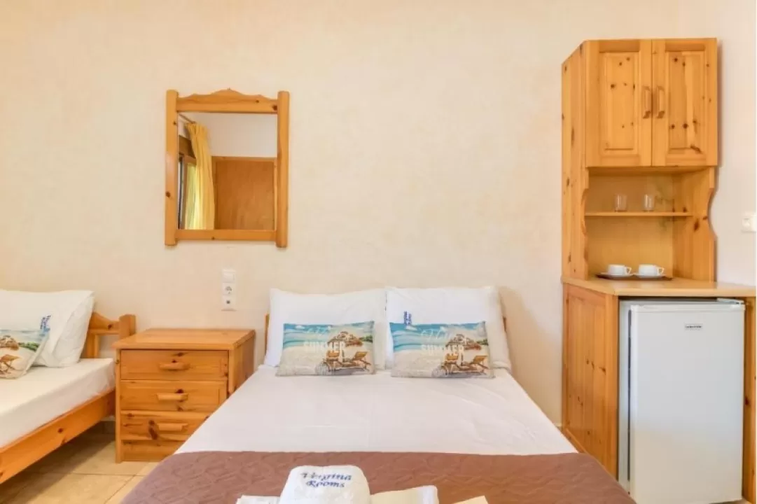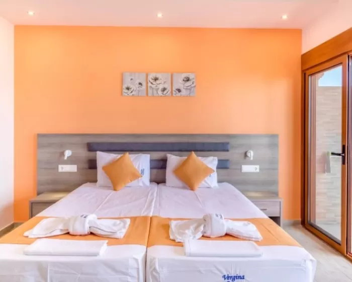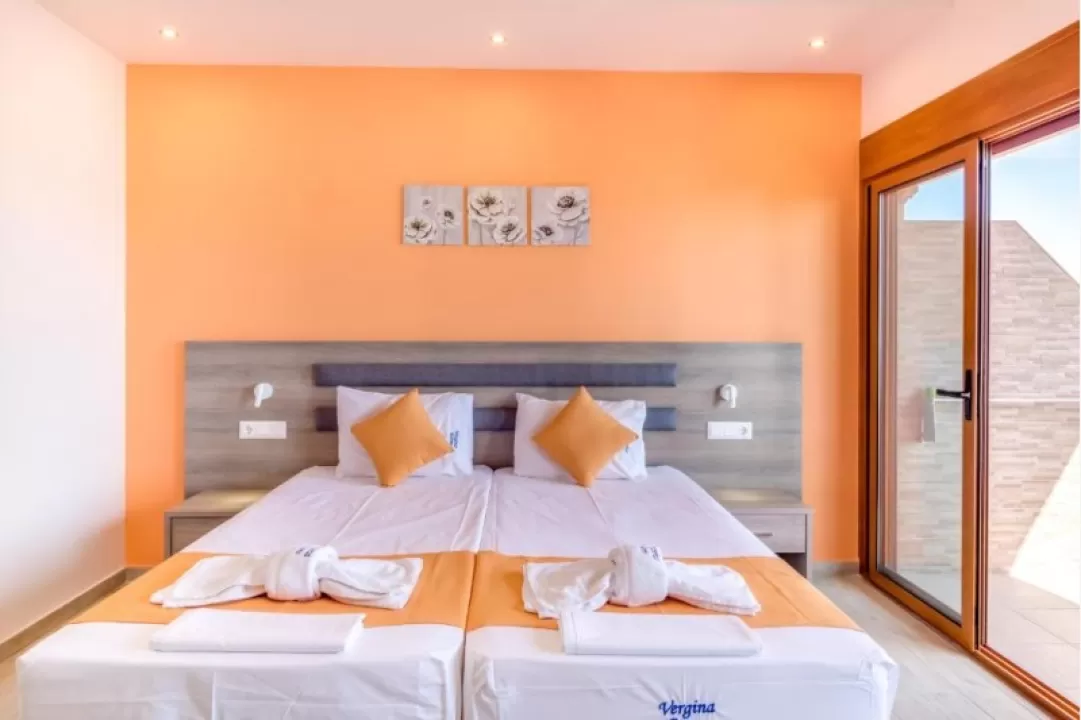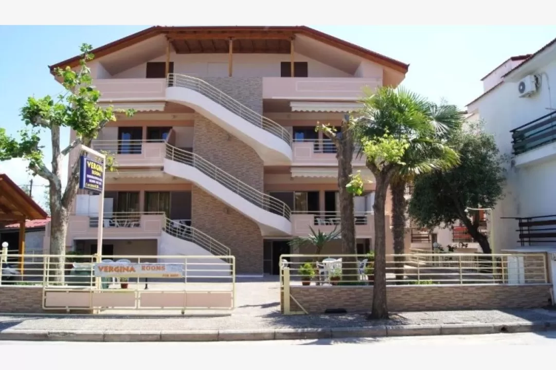 Vila Vergina Nea Potidea se nalazi na samoj plaži u Nea Potidei. U ponudi ovog objekta su lepo održavani studiji, apartmani i dupleks apartmani sa ili bez pogleda na more. Svaki od njih poseduje osnovno opremljenu kuhinju (koja je na terasi) sa mikrotalasnom pećnicom, skoro renovirano kupatilo, terasu, sef, TV i klima uređaj. Na poslednjem spratu su smeštena i dva potpuno renovirana studija sa direktnim pogledom na more (oznaka Lux) koji za treći krevet imaju komfornu sofu na rasklapanje.