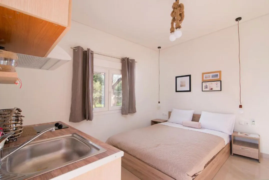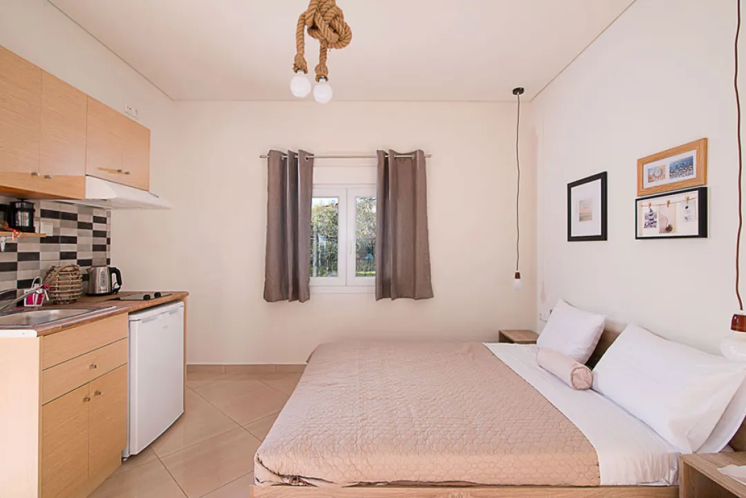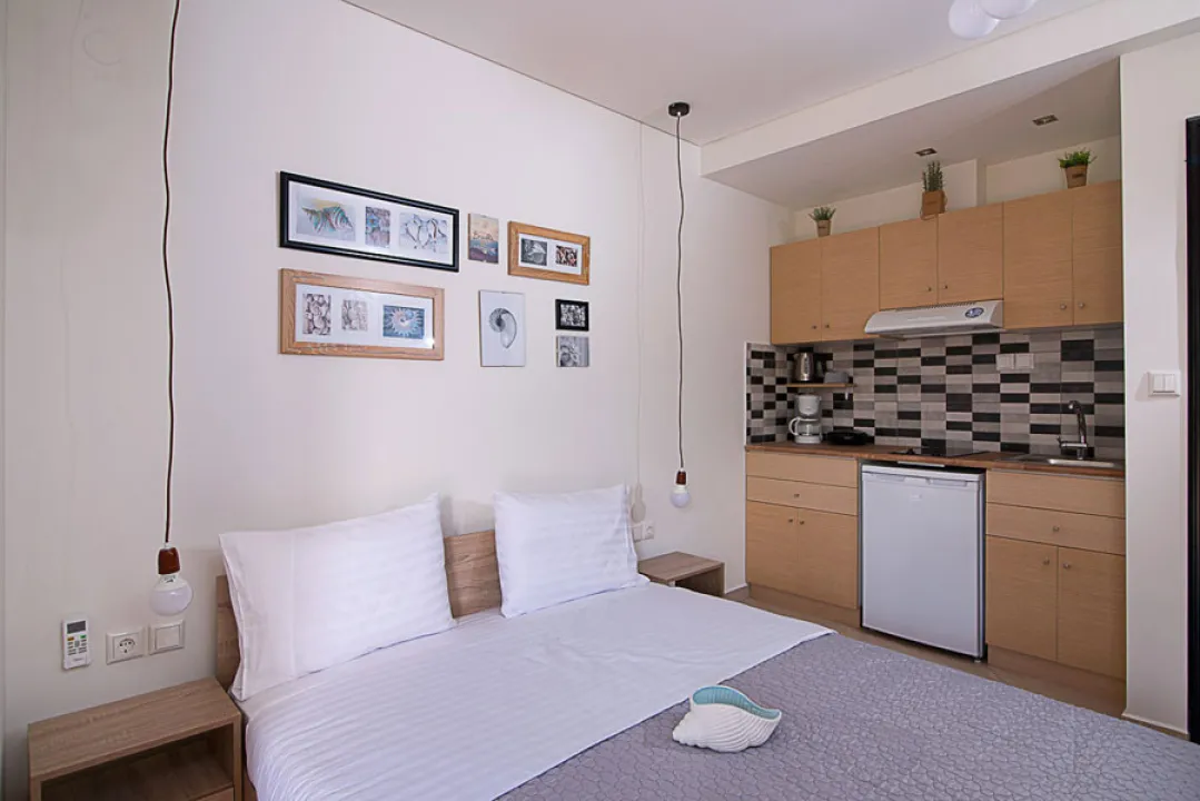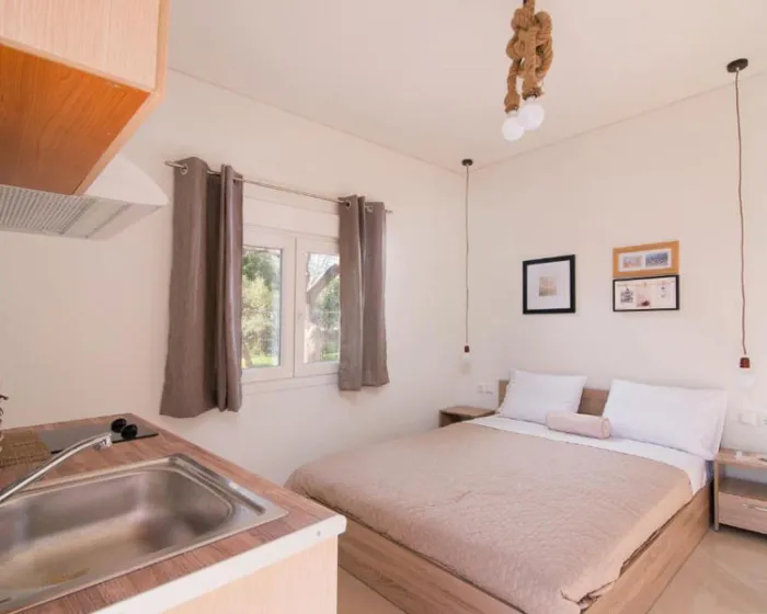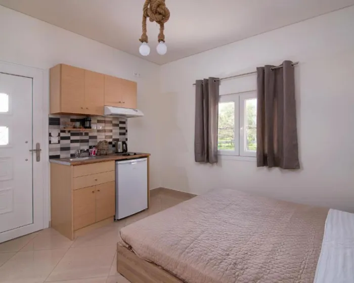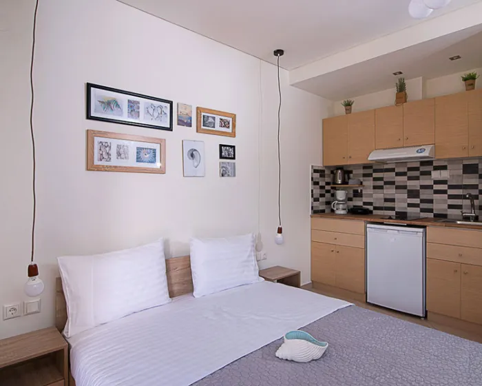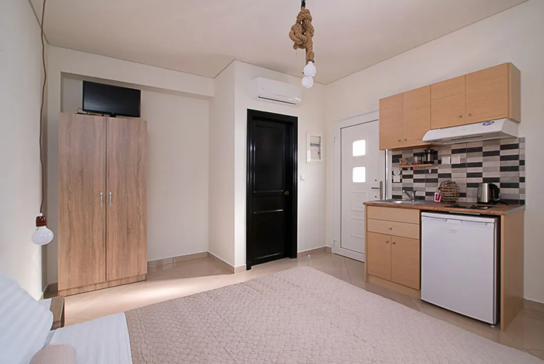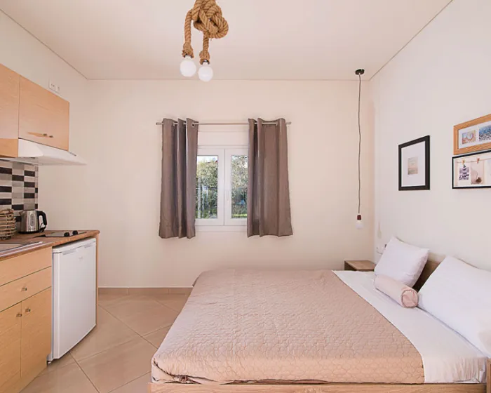 Dvokrevetni studio (1/2 std) – jedna prostorija sa francuskim ležajam, kuhinja u okviru iste prostorije, kupatilo