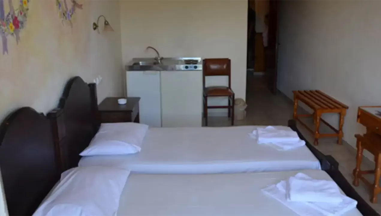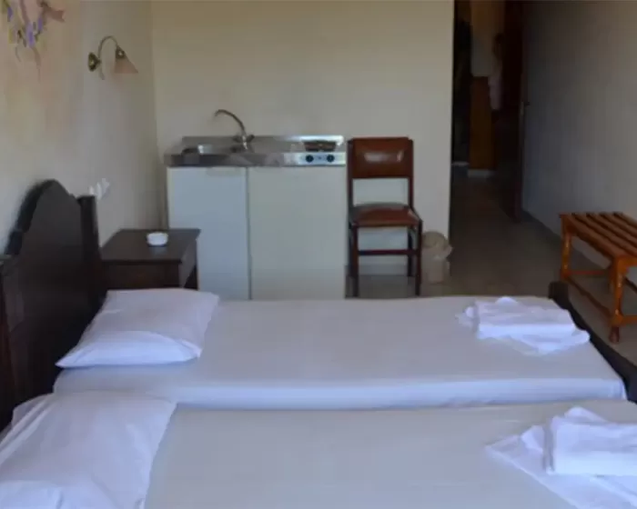 Dvokrevetni studiji se nalaze na prvom i drugom spratu , i svi imaju pogled ka luci i moru. U svom sastavu imaju dva standard singl ležaja ili francuski ležaj (dimenzije), TV, klima uredjaj, noćni stočić i ormar. U okviru studija se nalazi i mini kuhinja koja u potpunosti opremljena posudjem za dve osobe, frizider. Kupatilo se sastoji od TUŠ/WC. Studji poseduju peškire.Trokrevetni studiji se nalaze na prvom spratu i svi imaju pogled ka luci i moru. U svom sastavu imaju singl ležaj i francuski ležaj (dimenzije 145×190 cm), TV, klima uredjaj, noćni stočić i ormar. U okviru studija se nalazi i mini kuhinja koja u potpunosti opremljena posudjem za tri osobe. Kupatilo se sastoji od TUŠ/WC. Studji poseduju peškire.