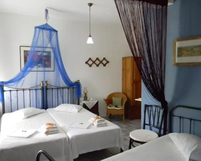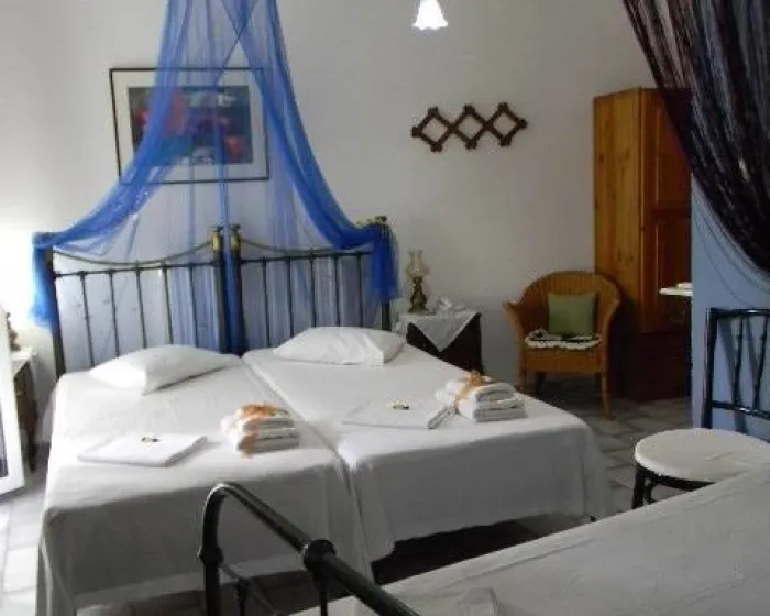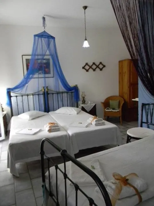 Vila Xenios se nalazi u istoj ulici kao i vila Delfini, udaljena su 50 metara (druga ulica od mora). Oko 50m do centralne plaže, oko 200m do centra mesta i marketa... Zgrada ima 3 sprata, a naše smeštajne jedinice se nalaze na 1 i 2 spratu. Vlasnica vile je nedavno penzionisana profesorka likovne kulture, inače veoma ljubazna osoba. Svoj talenat i smisao za dekoraciju maksimalno iskoristila u uredjenju vile, sto je vrlo primetno na svakom koraku. U prizemlju se nalazi stan od vlasnika sa zajedničkim dvorištem tako da njihovo svakodnevno prisustvo uliva poverenje, jer su uvek tu na usluzi gostima.