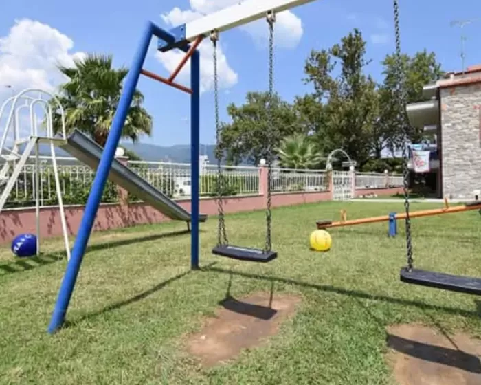 otvoreni bazen, ležaljke i suncobrani oko bazena, dečiji bazen, uredjeno dvorište, dečije igralište, wifi internet