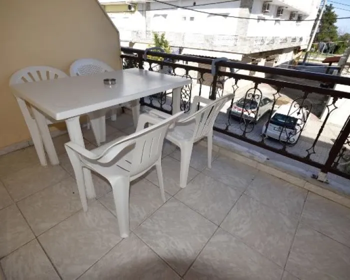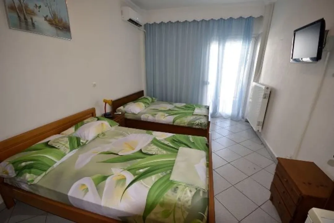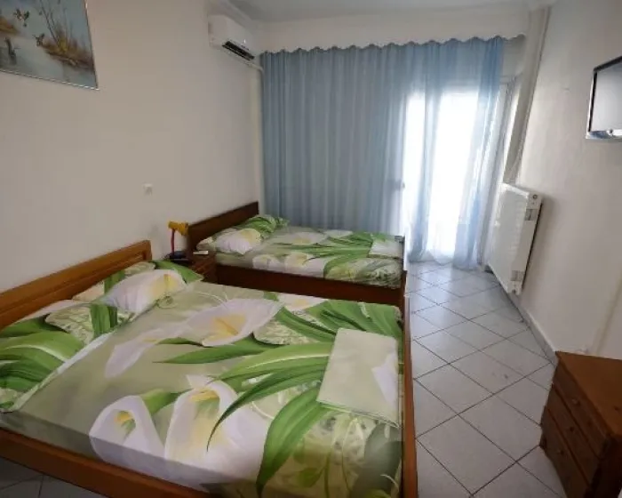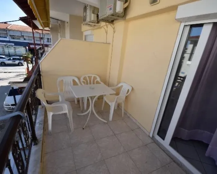 Vila Zarkadas, Kalitea se nalazi u strogom centru na samom šetalištu. Udaljena je svega 100m od staze koja vodi do prelepe peščane plaže. Sadrži blago izdvojenu kuhinju opremljenu sudoperom, rešoom, frižiderom sa malom komorom za zamrzavanje, aspiratorom i priborom. Kupatilo se nalazi preko puta kuhinje na ulazu, dok je prostorna terasa sa pogledom na šetalište i ka moru poslednja na kraju prostorije. Kod dvokrevetnih i trokrevetnih studija kuhinja se nalazi na terasi, pa je samim tim studio komforniji. Sve jedinice su opremljene klimom, LCD TV, garniturom za sedenje, sušilicom, ogledalom, ormarom. Promena posteljine je jednom tokom boravka. Gosti sami održavaju higijenu studia.
