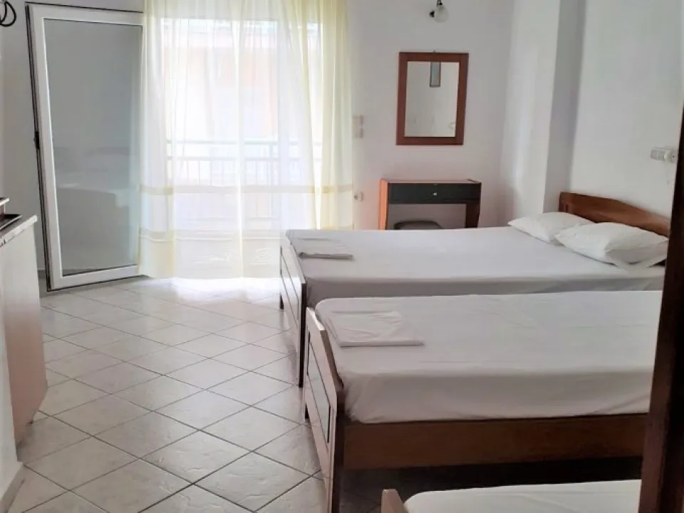 Svaki studio poseduje opremljenu čajnu kuhinju (osnovno posuđe, frižider, rešo, osnovni pribor za jelo), kupatilo, prostranu terasu sa garniturom za sedenje i TV. Dva studija koja se nalaze na 2. spratu, osim svojih sopstvenih terasa, imaju još jednu ogromnu, zajedničku koju koriste samo gosti koji u njima borave. Ova zajednička terasa je zaista kvalitet više jer osim veličine, omogućava i sjajan pogled na Olimp sa jedne strane i na more sa druge strane (zbog udaljenosti vile oko 70 metara od plaže, ovaj pogled je, naravno, stidljiv, ali ipak lep i prijatan).