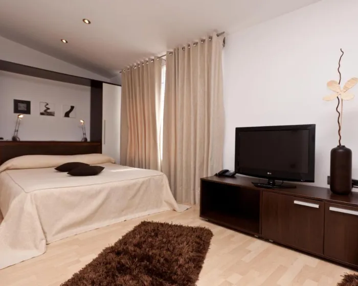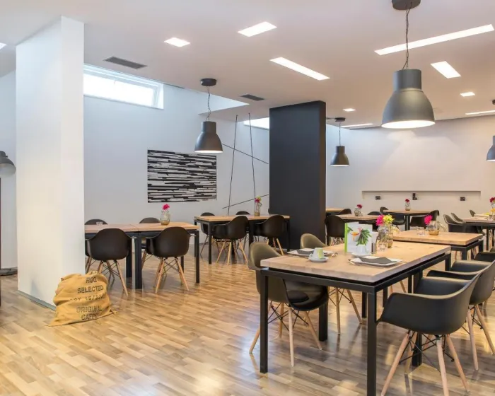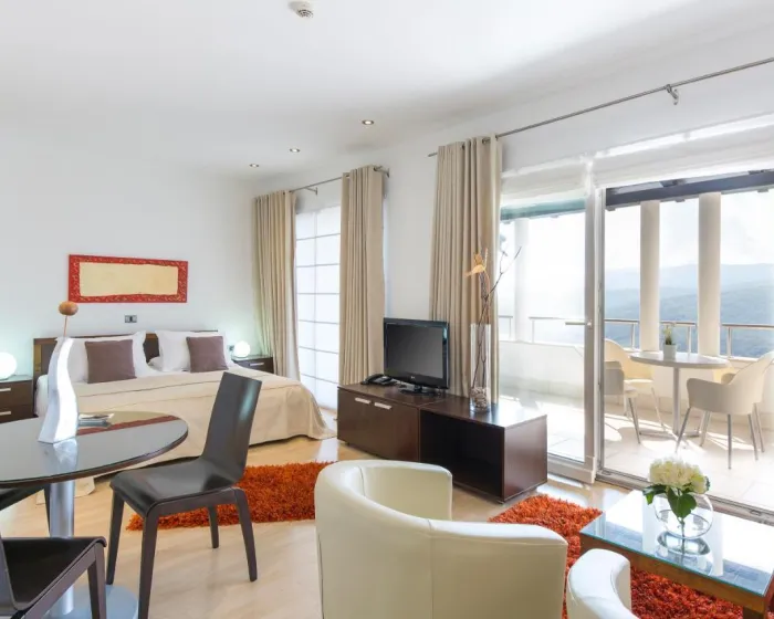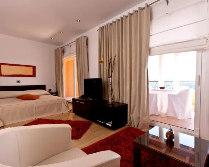 Centralno grejanje osigurava da sobe održavaju ugodnu temperaturu. Gosti mogu uživati u pogledu na planinu sa terase ili balkona. Sobe imaju bračni krevet i kauč na razvlačenje. Vrednosti se mogu bezbedno čuvati u sefu. Dodatne pogodnosti uključuju frižider, mini frižider i aparat za čaj/kafu. Presa za pantalone je obezbeđena radi praktičnosti gostiju. Tu je i telefon i WiFi (bez dodatne naknade). Kupatila su opremljena tušem i kadom. Hotel ima porodične sobe i sobe za nepušače.