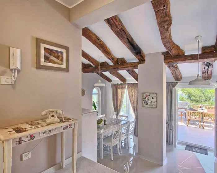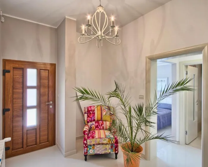 Prostrana kuća za odmor ima DVD plejer, potpuno opremljenu kuhinju sa mašinom za pranje sudova, rernu i mikrotalasnu pećnicu, dnevnu sobu, trpezariju, 5 spavaćih soba i 4 kupatila sa đakuzijem. Tu je i televizor. Radi veće privatnosti, smeštaj ima poseban ulaz.