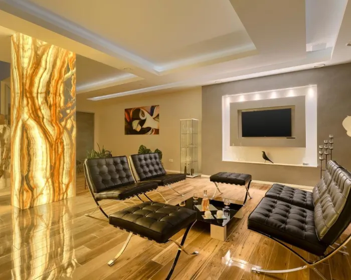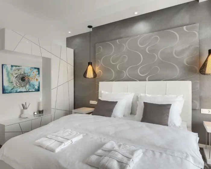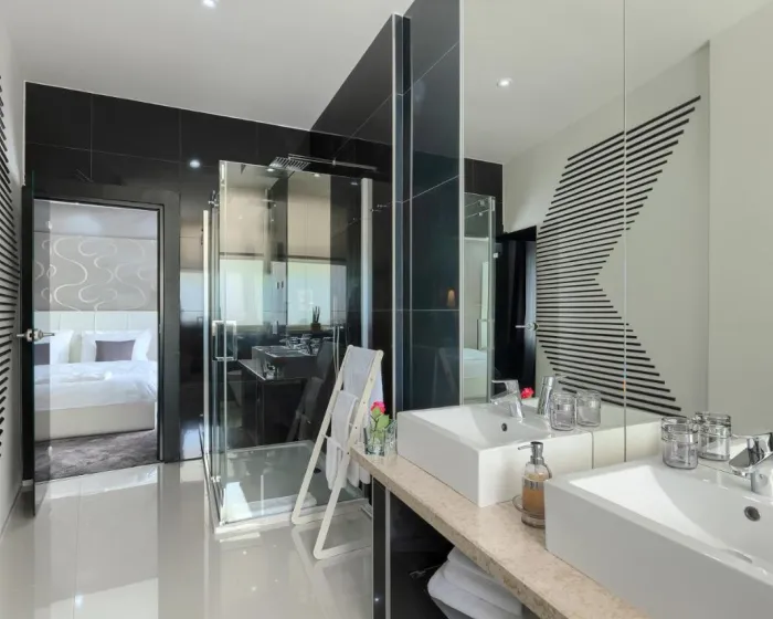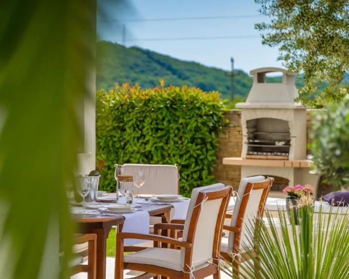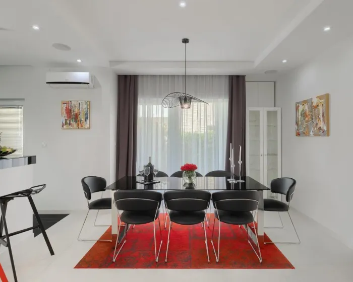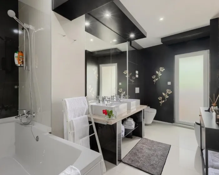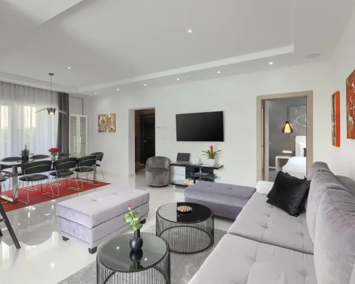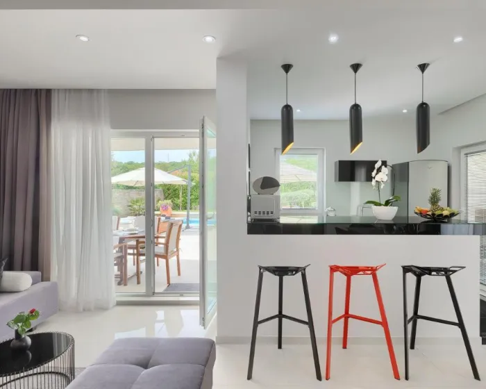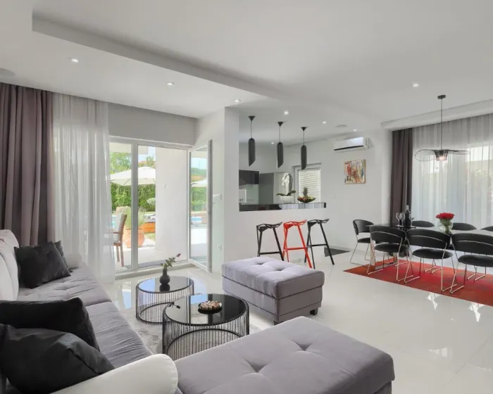 Vila ima 3 spavaće sobe, 4 kupatila, posteljinu, peškire, flat-screen TV sa uslugama strimovanja, trpezariju, potpuno opremljenu kuhinju i terasu sa pogledom na planinu. Privatni ulaz vodi goste u vilu gde ih čeka vino ili šampanjac i voće. Objekat ima spoljni prostor za ručavanje.