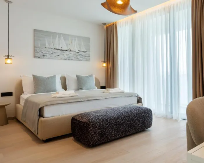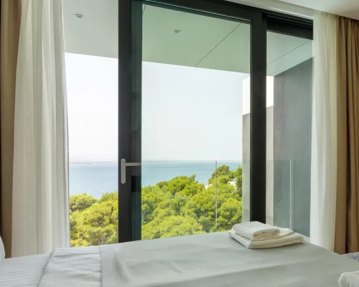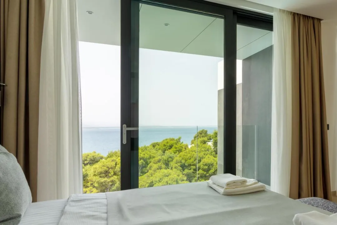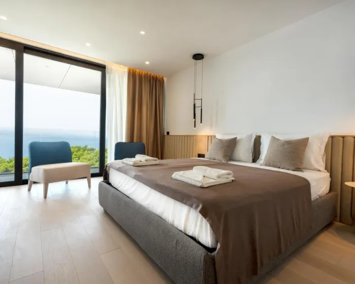 Prostrana vila sa terasom i pogledom na more ima 4 spavaće sobe, dnevni boravak, flat-screen TV, opremljenu kuhinju sa mašinom za pranje sudova i rernu, kao i 5 kupatila sa tušem. Privatan ulaz vodi goste u vilu, gde mogu uživati u vinu ili šampanjcu. Vila nudi posteljinu, peškire i uslugu pranja veša.