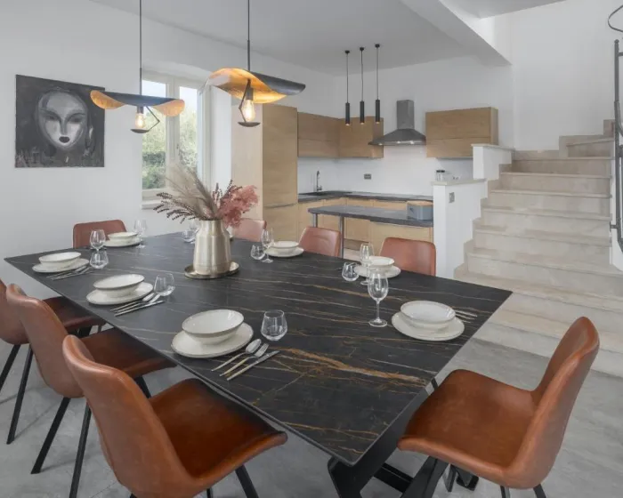 Prostrana kuća ima potpuno opremljenu kuhinju sa mašinom za pranje sudova, rernom i mikrotalasnom pećnicom, 2 dnevna boravka, trpezariju, 5 spavaćih soba i 6 kupatila sa đakuzijem. Tu je i TV. Za dodatnu privatnost, smeštaj ima sopstveni ulaz.