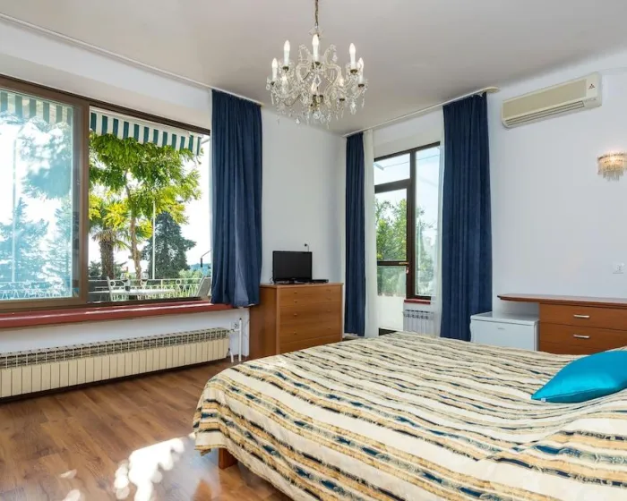 Centralno grejanje obezbeđuje udobnu temperaturu u sobama. Većina jedinica ima pogled na more. Sobe imaju bračni krevet i sofu. Dodatni kreveti mogu biti zatraženi. Ostale karakteristike uključuju TV, radio i WiFi (bez dodatne naknade). Pansion ima porodične sobe i sobe za nepušače.