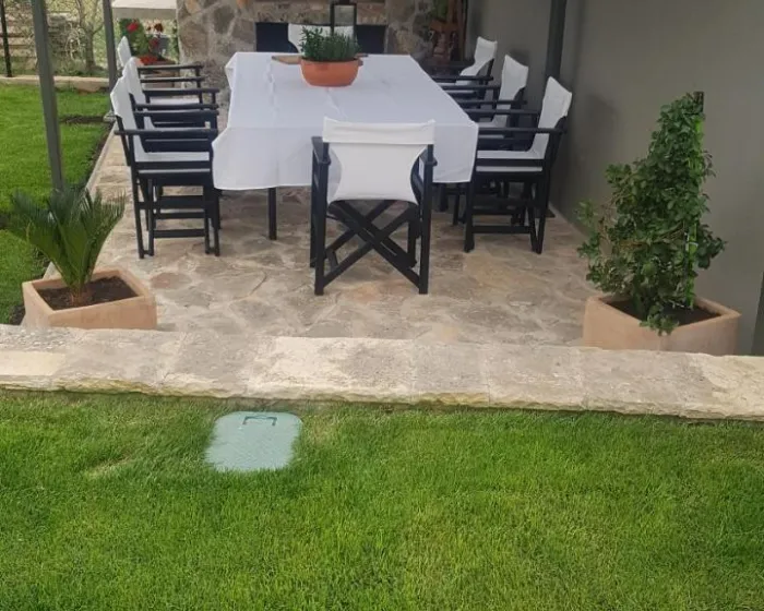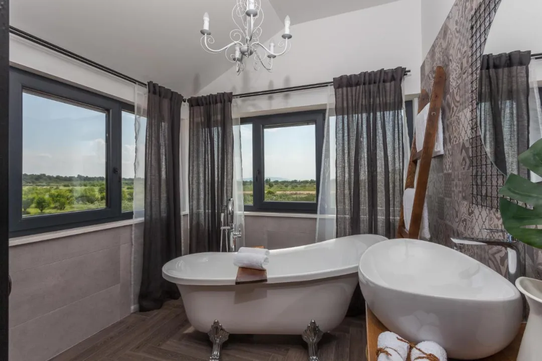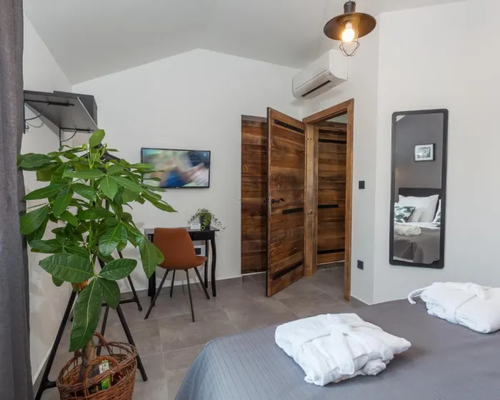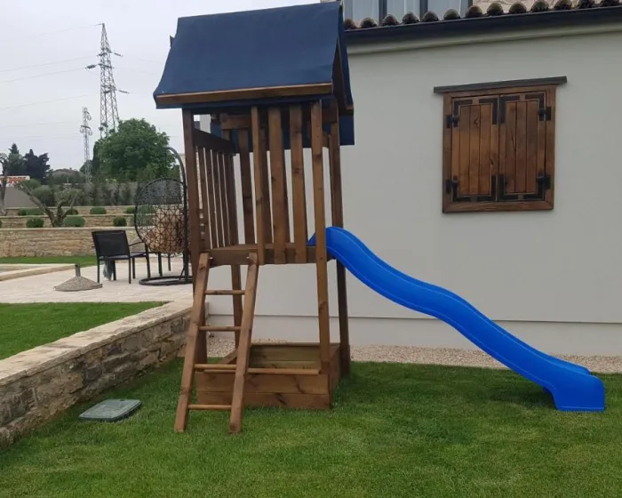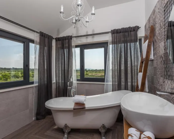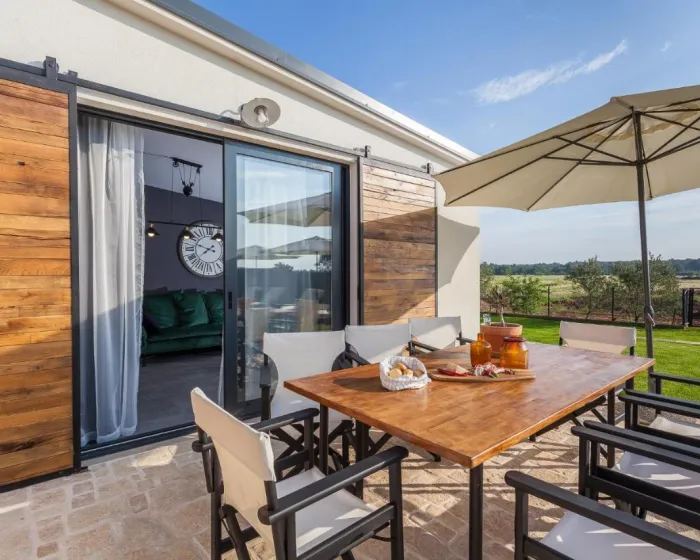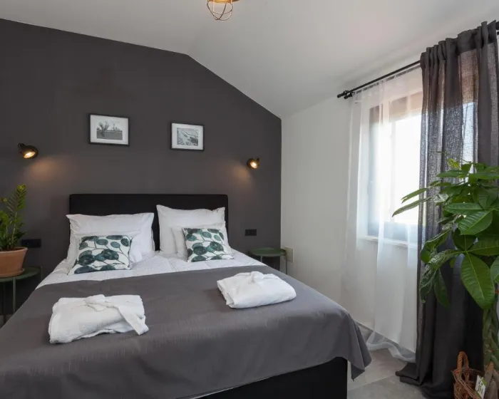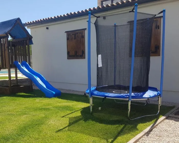 Prostrana vila ima potpuno opremljenu kuhinju sa sudomasinom, rernom i mikrotalasnom pecnicom, dnevni boravak sa prostorom za sedenje i trpezarijom, 4 spavace sobe i 4 kupatila sa tus kabinom i kadom. Jednostavnost je klimatizovana i ukljucuje terasu sa prostorom za obedovanje na otvorenom, kao i ravnim TV-om sa satelitskim kanalima. Takode je dostupna garderoba i usluga pranja veša.