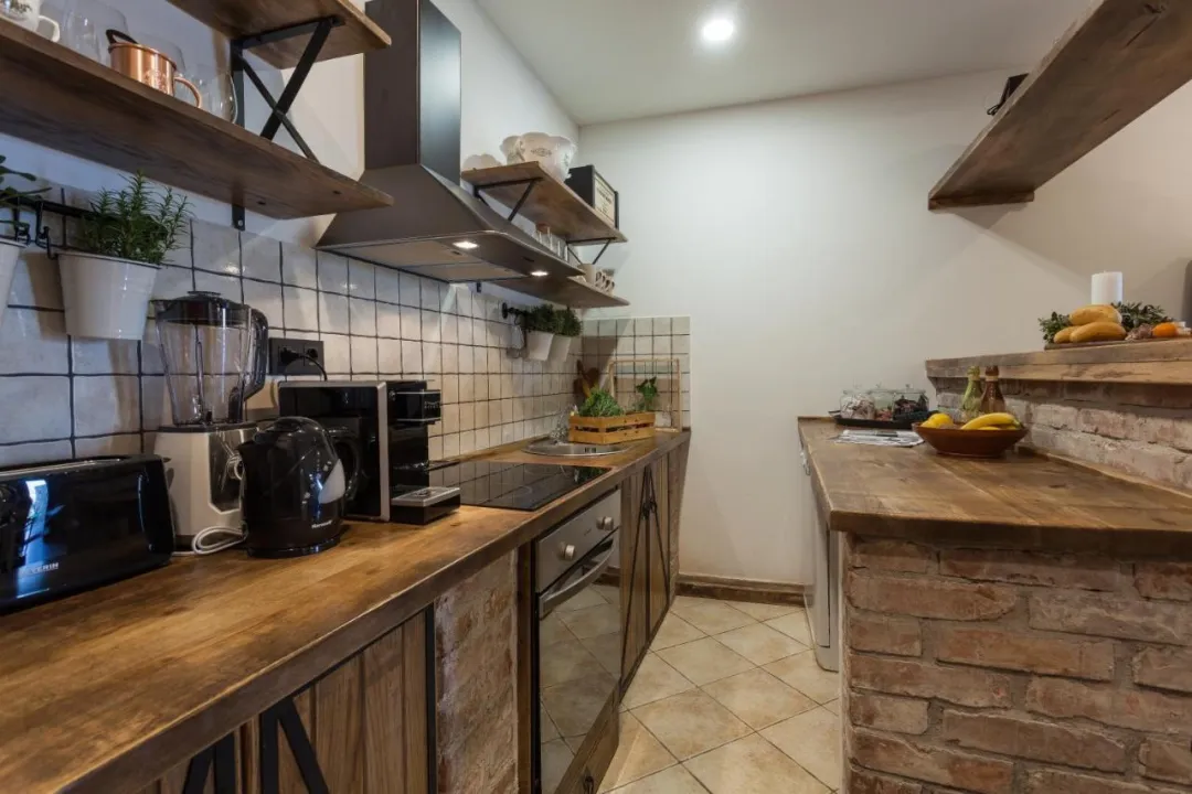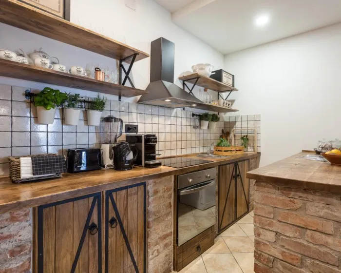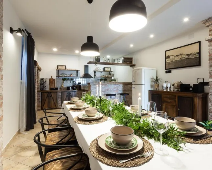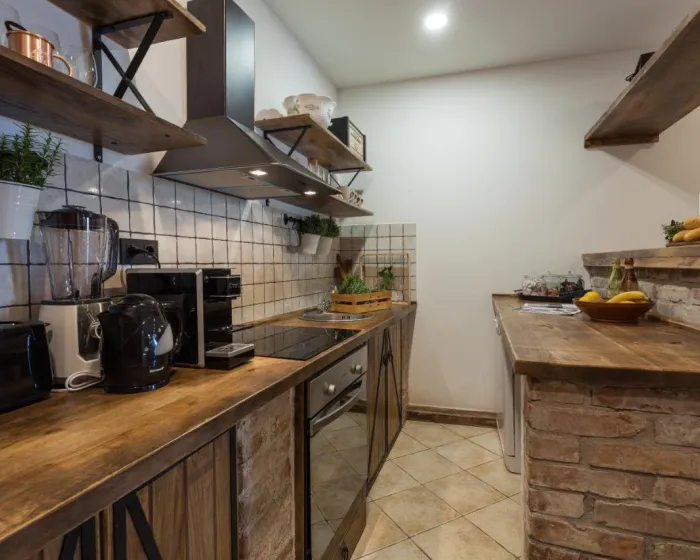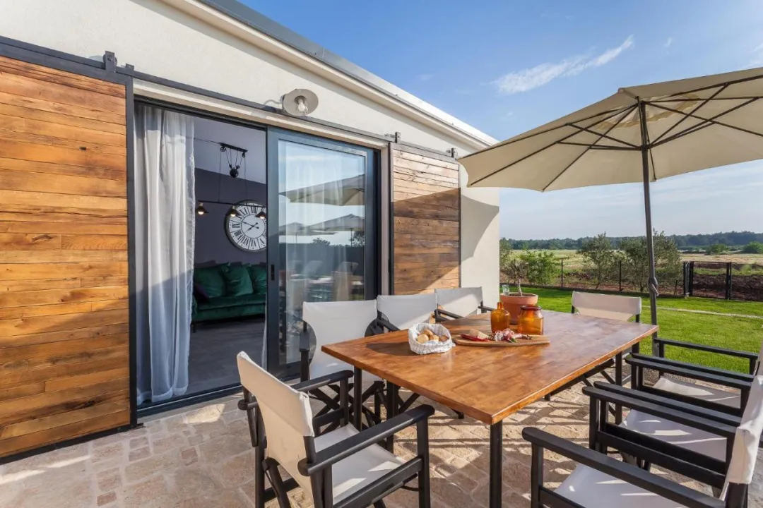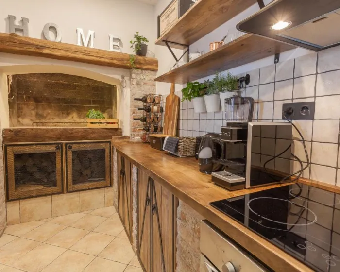 Prostrana vila ima potpuno opremljenu kuhinju sa sudomasinom, rernom i mikrotalasnom pecnicom, dnevni boravak sa prostorom za sedenje i trpezarijom, 4 spavace sobe i 4 kupatila sa tus kabinom i kadom. Jednostavnost je klimatizovana i ukljucuje terasu sa prostorom za obedovanje na otvorenom, kao i ravnim TV-om sa satelitskim kanalima. Takode je dostupna garderoba i usluga pranja veša.