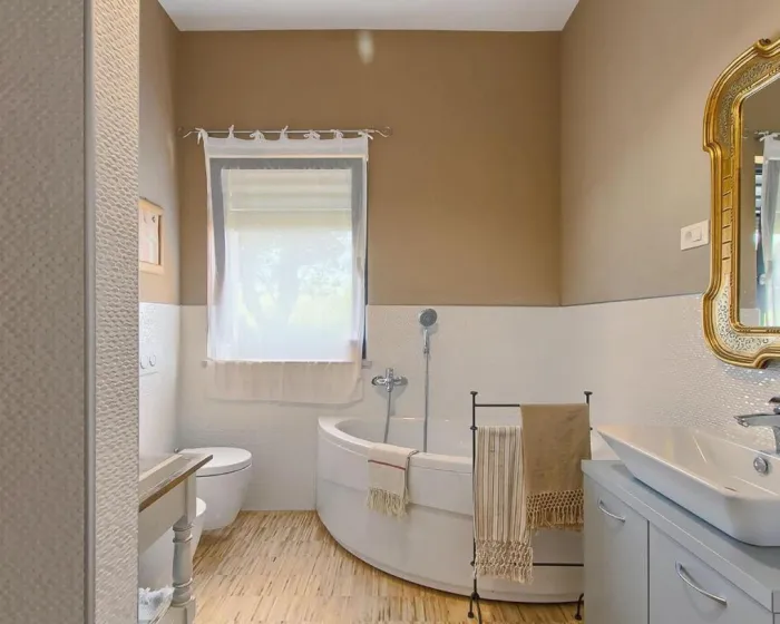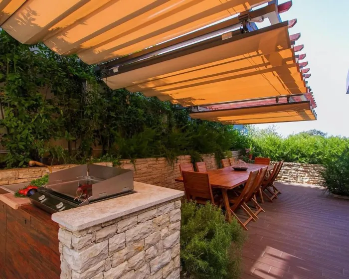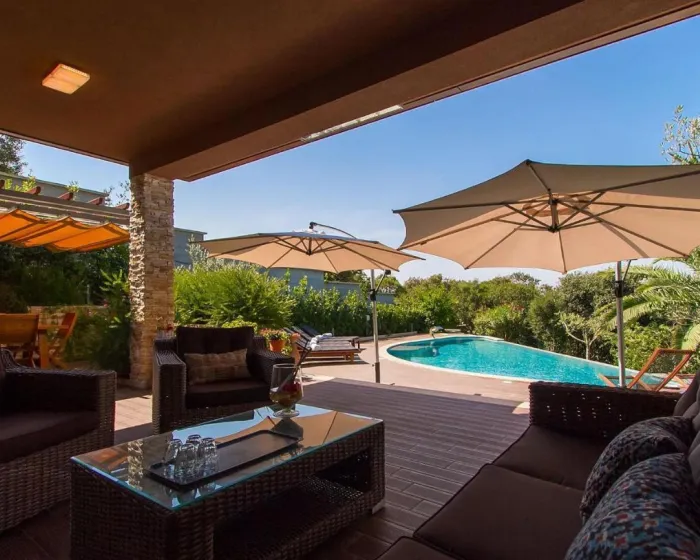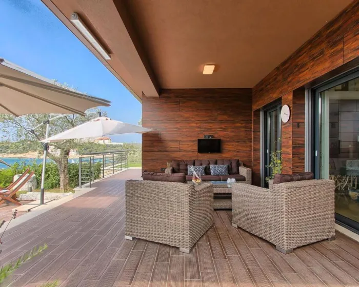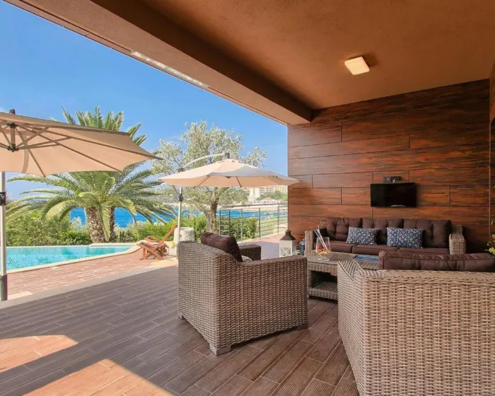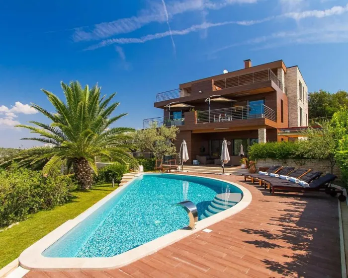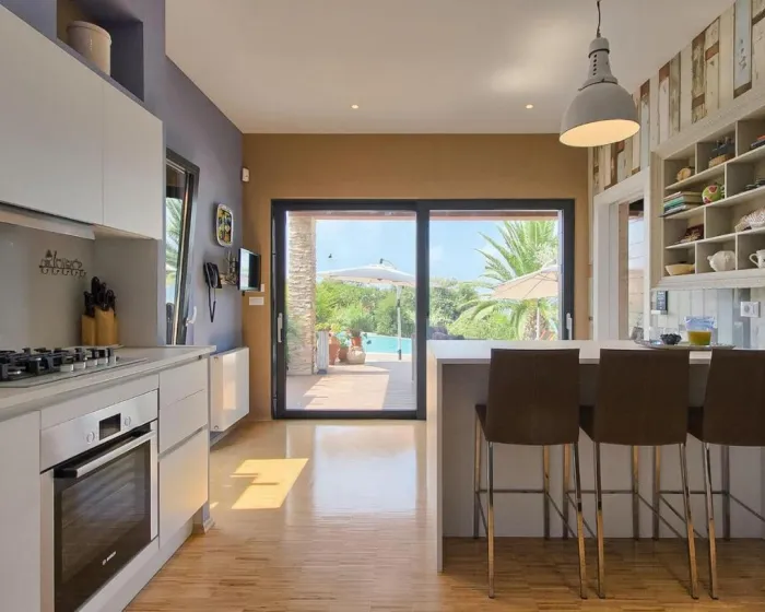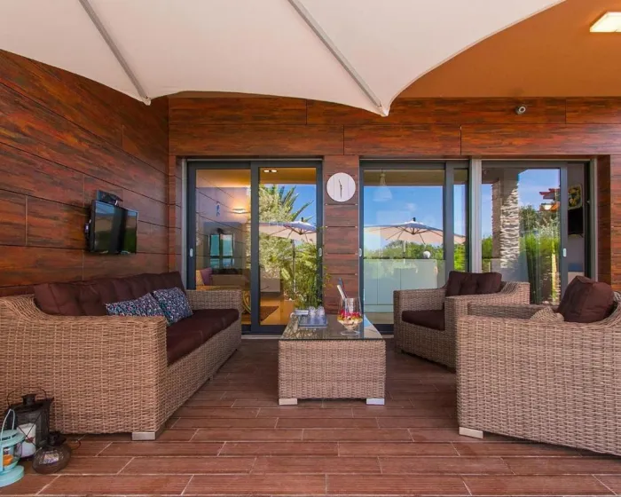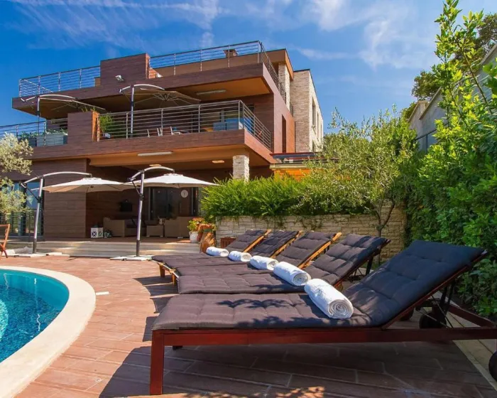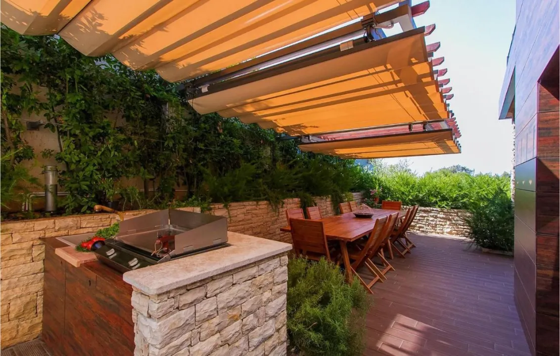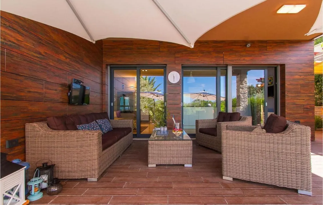 Prostrana kuća za odmor ima 6 odvojenih spavaćih soba, 6 kupatila, potpuno opremljenu kuhinju sa trpezarijom i mašinom za pranje sudova, kao i 3 dnevna boravka sa TV-om. Za dodatnu privatnost, smeštaj ima privatni ulaz.