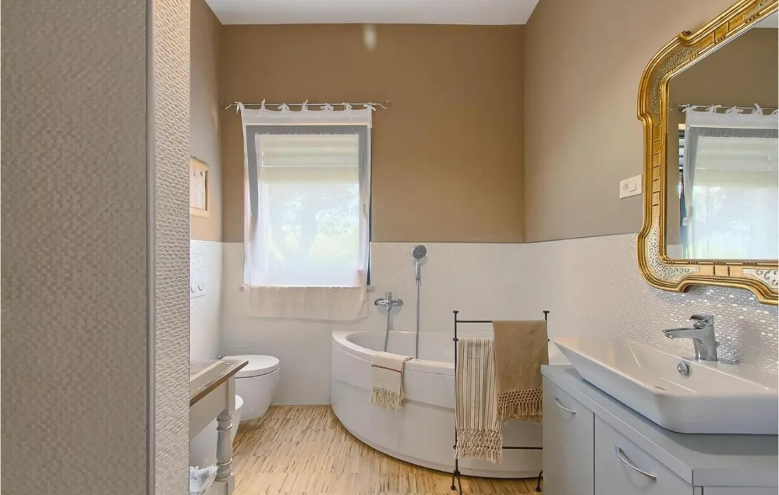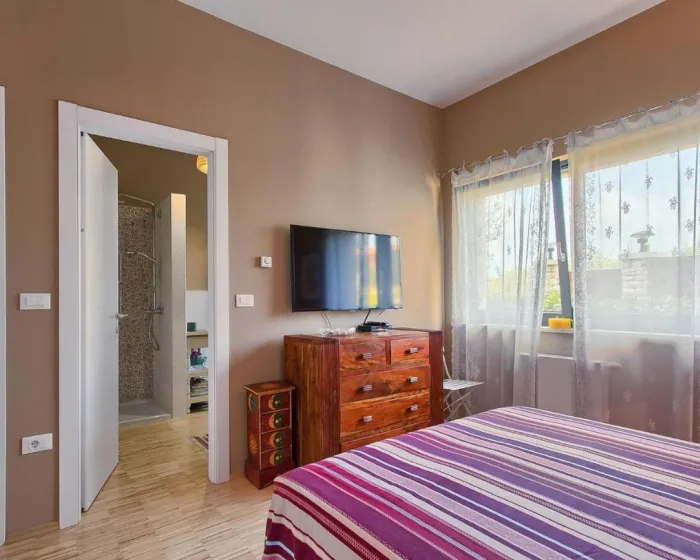 Pulska Arena je udaljena 5,9 km od kuće za odmor, a Katedrala Sv. Eufemija u Rovinju je udaljena 46 km. Aerodrom Pula je udaljen 11 km od nekretnine.