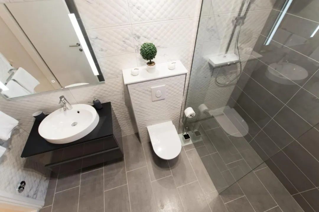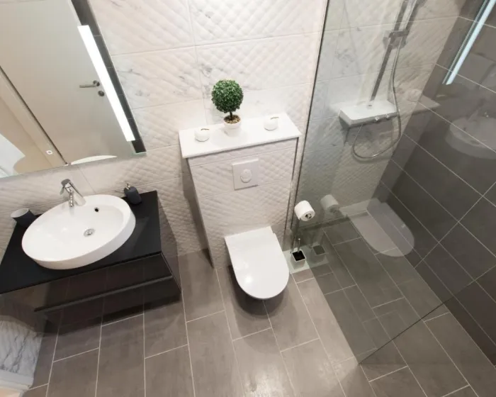 Apartman gostima pruža terasu, pogled na more, prostor za sedenje, satelitsku ravnog ekrana TV, potpuno opremljenu kuhinju sa mašinom za sudove i rernom, kao i privatno kupatilo sa tušem i fenom za kosu. Mikrotalasna rerna, toster i frižider su takođe dostupni, kao i aparat za kafu i čajnik. U kompleksu apartmana, svaka jedinica uključuje posteljinu i peškire.