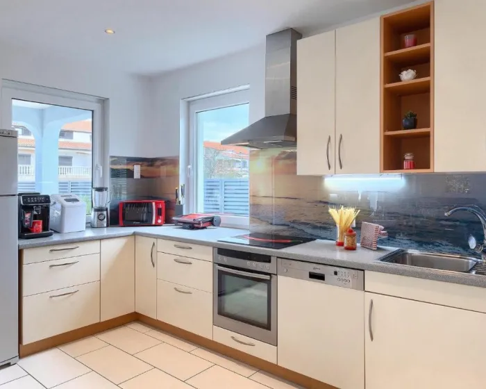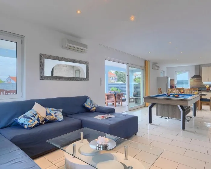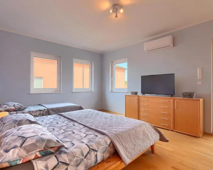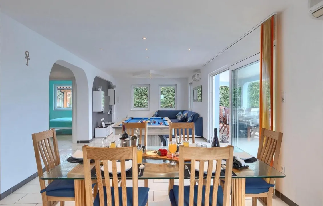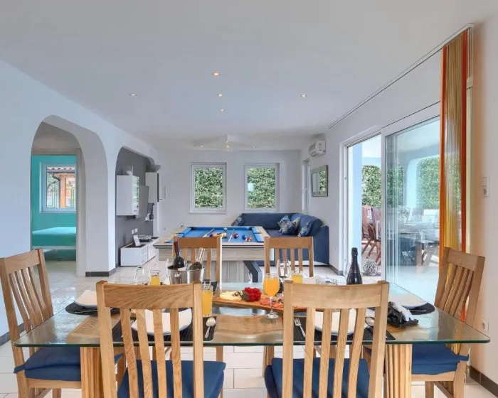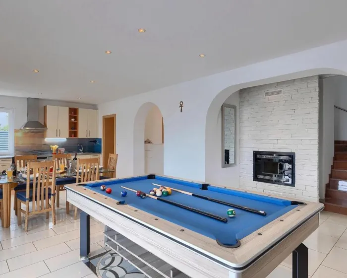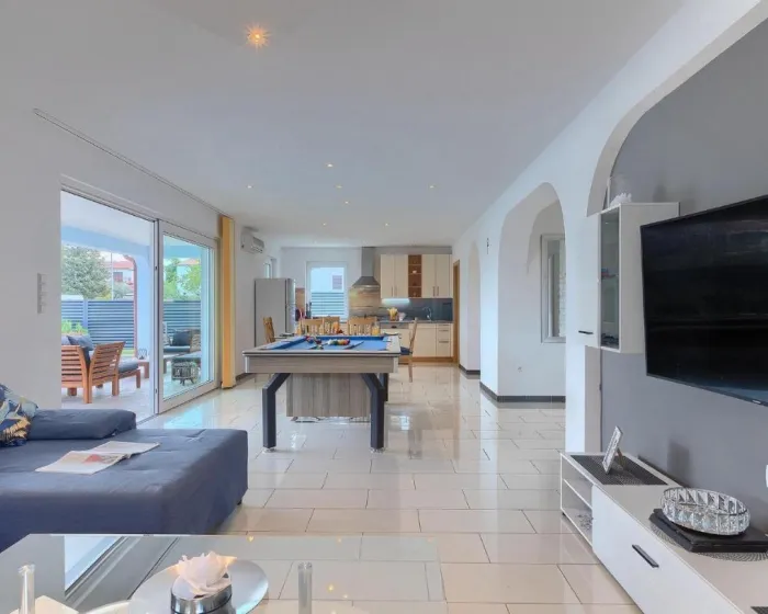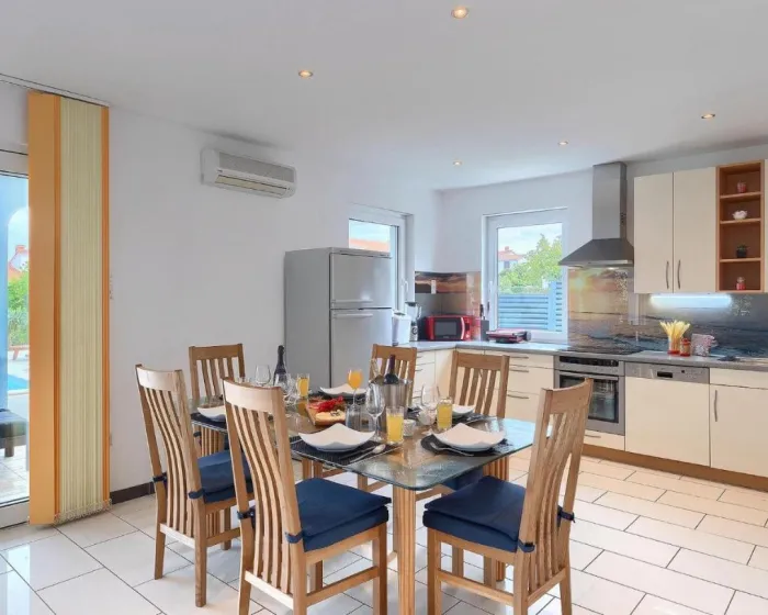 Prostrana kuća za odmor ima potpuno opremljenu kuhinju sa mašinom za pranje sudova, rernom i mikrotalasnom, dnevnu sobu, trpezariju, 4 spavaće sobe i 2 kupatila sa đakuzijem. Tu su i TV i DVD plejer. Radi veće privatnosti, smeštaj ima privatni ulaz.