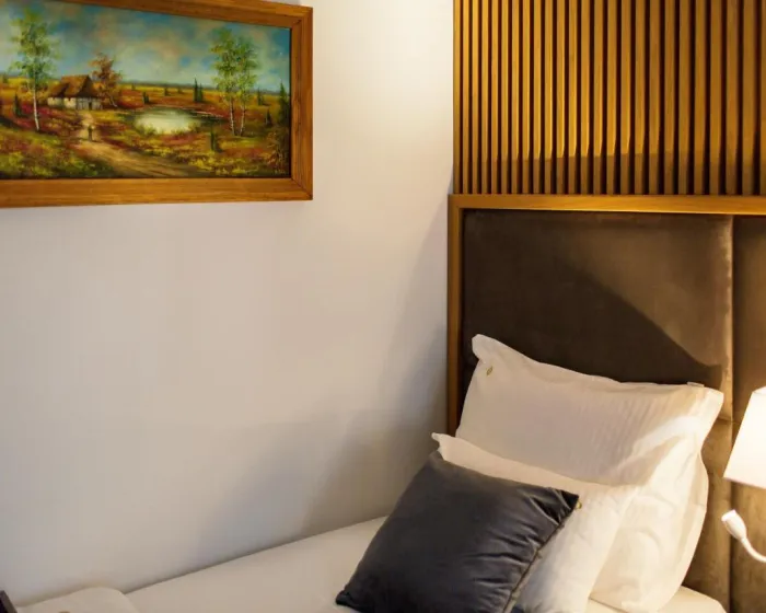 Centralno grejanje osigurava da sobe održe pravu temperaturu. Sobe imaju bračni krevet i kauč na razvlačenje. Dodatni kreveti mogu biti zatraženi. WiFi (bez dodatne naknade) dolazi kao standard u sobama. Pansion ima porodične sobe i sobe za nepušače.