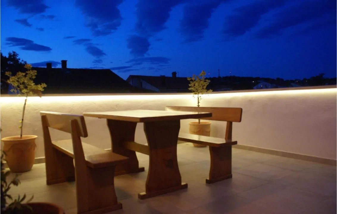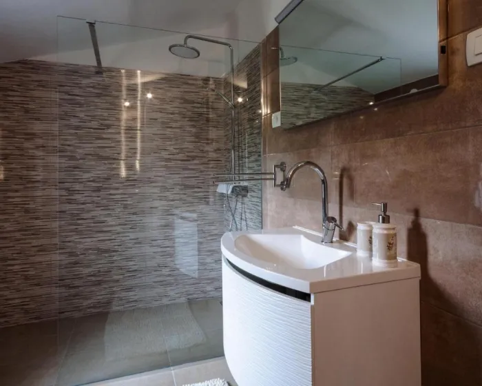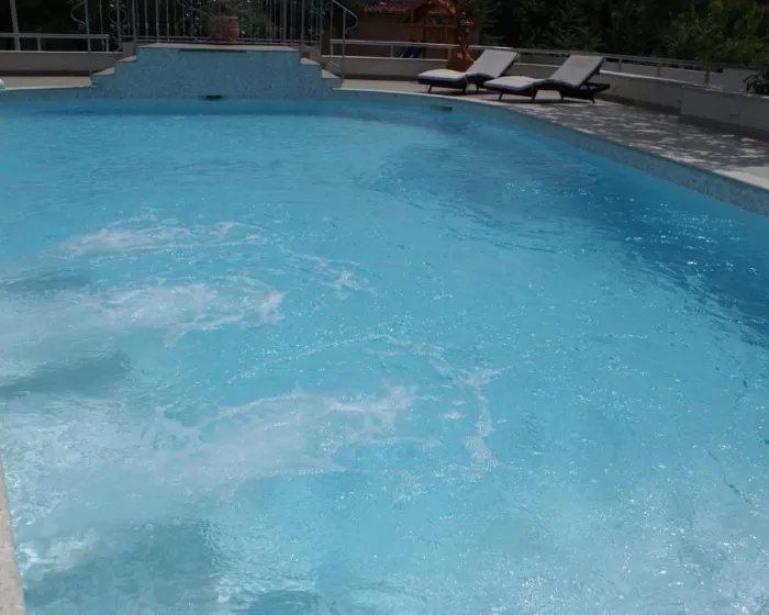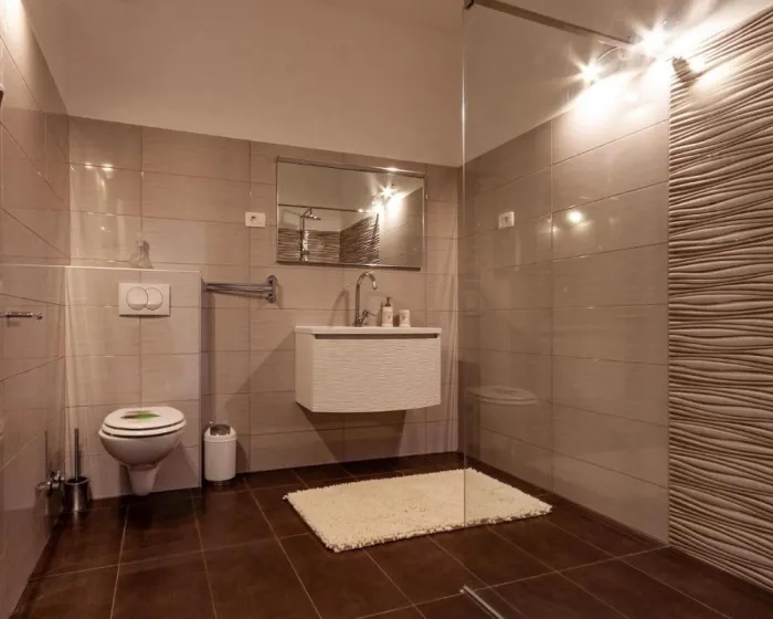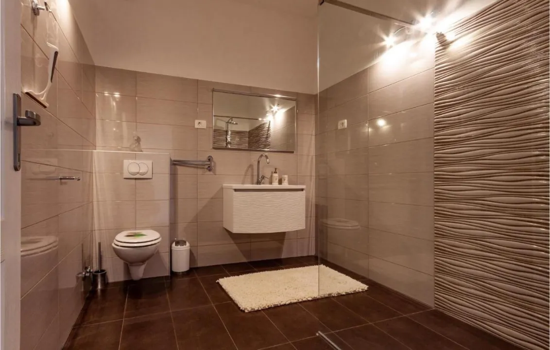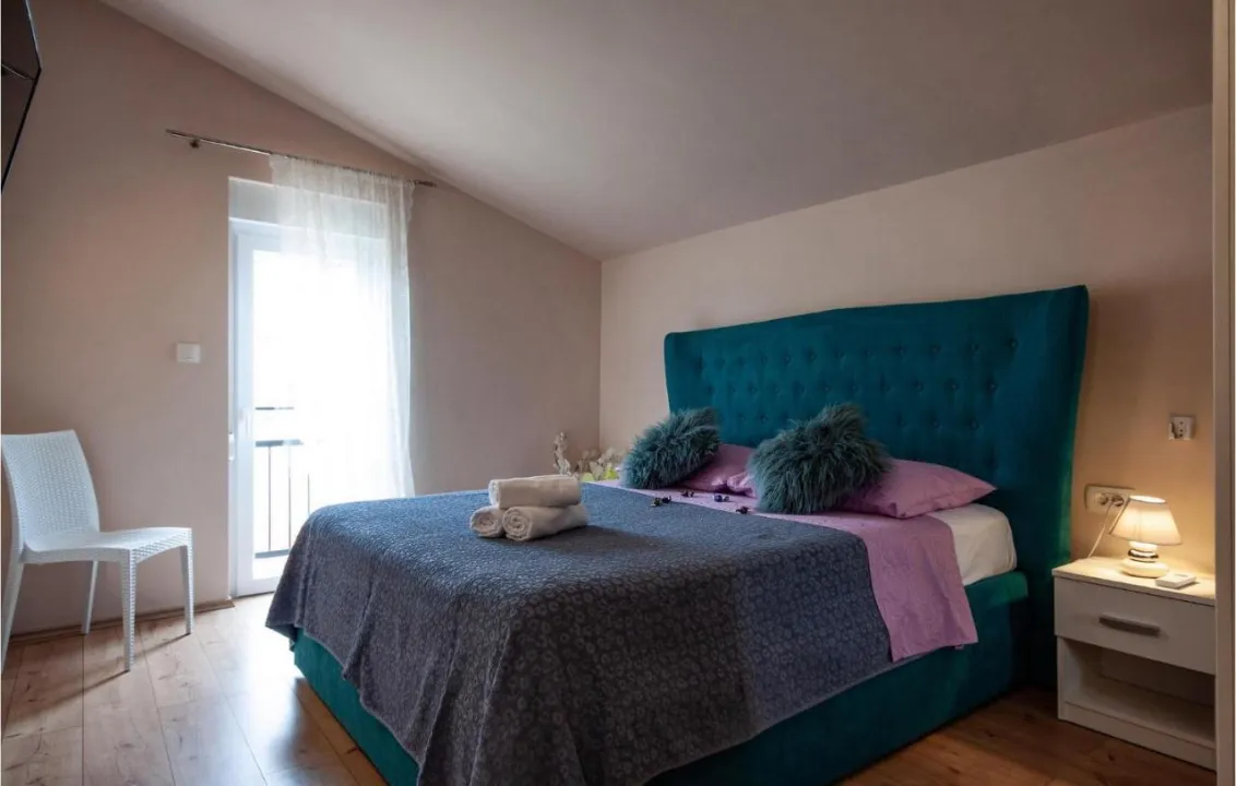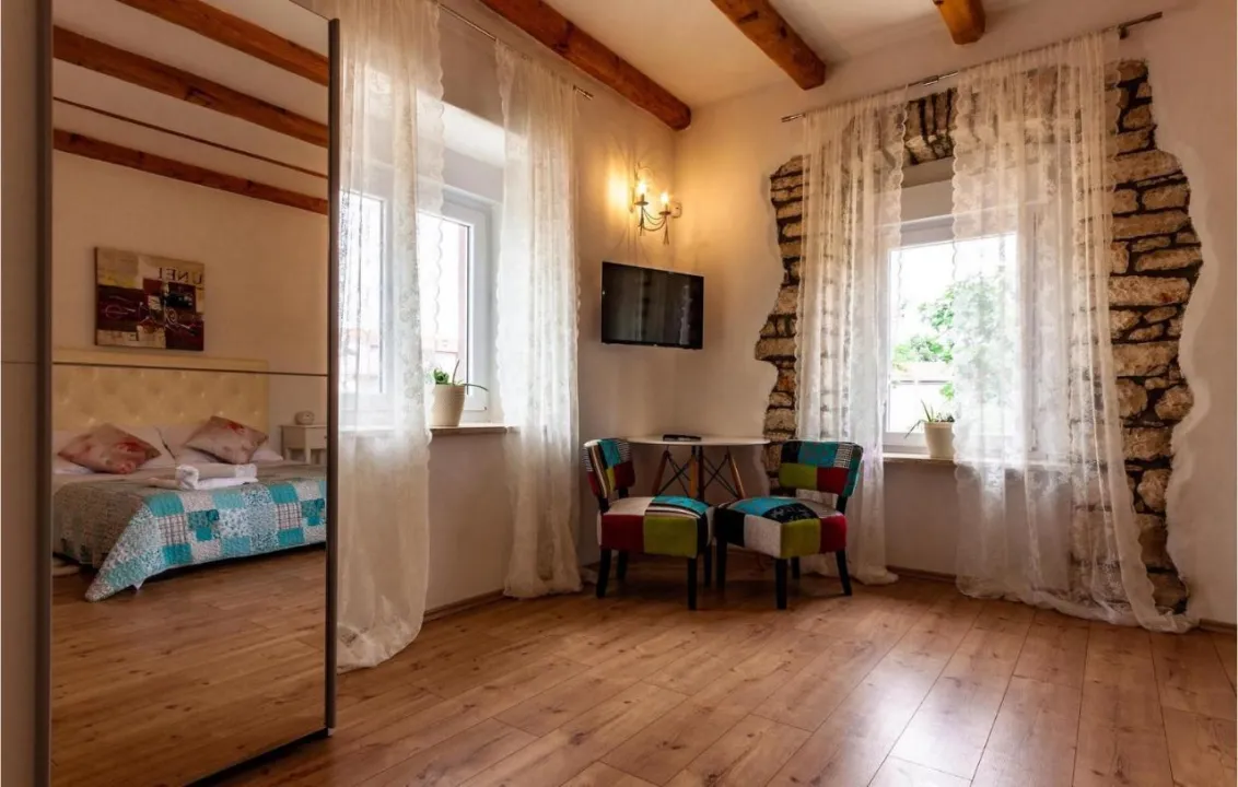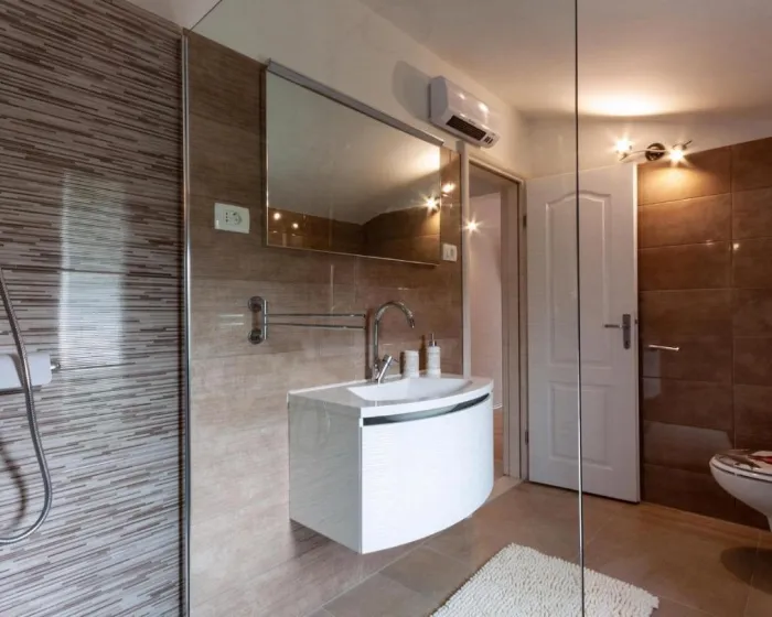 Prostrana kuća za odmor ima 5 odvojenih spavaćih soba, 5 kupatila, potpuno opremljenu kuhinju sa trpezarijom i mašinom za pranje posuđa, kao i dnevni boravak sa TV-om. smeštaj ima i kamin.
