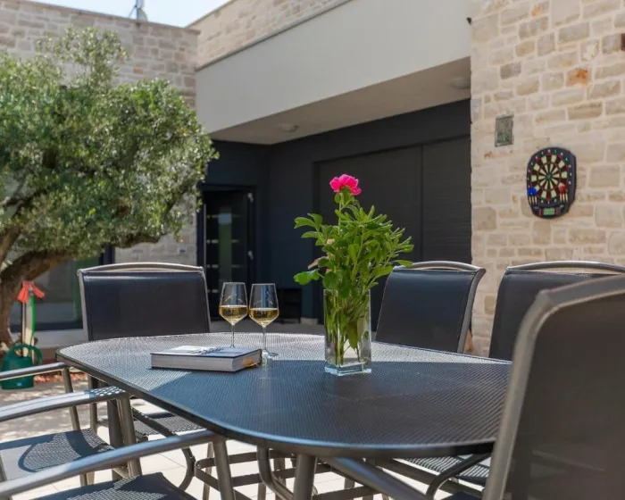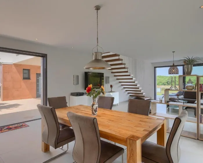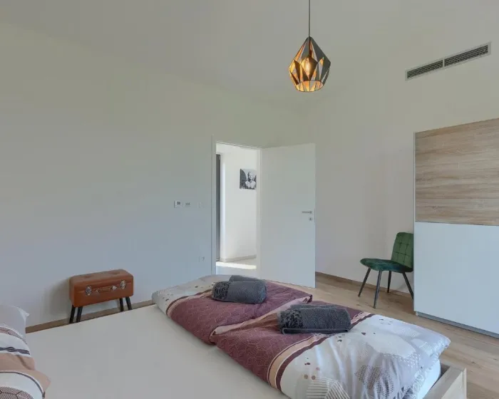 Prostrana kuća za odmor sadrži 3 odvojene spavaće sobe, 2 kupatila, potpuno opremljenu kuhinju sa trpezarijskim delom i mašinom za pranje sudova, kao i dnevni boravak sa TV-om. Za dodatnu privatnost, smeštajna jedinica ima privatni ulaz.
