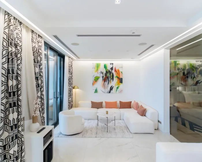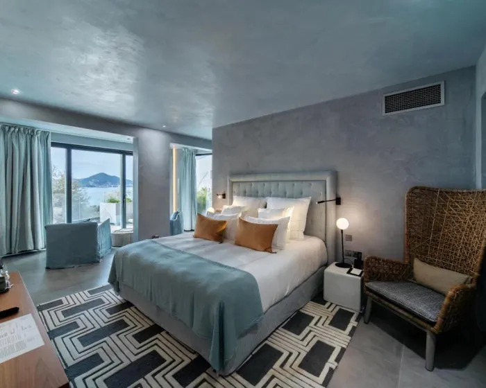 Sobe su opremljene klima uređajem i centralnim grejanjem. Gosti imaju pogled na more sa balkona ili terase, koji su standardni dodatak nekih soba. Sobe imaju bračni krevet i sofu na razvlačenje. Dostupne su i odvojene spavaće sobe. Dodatni kreveti mogu biti zatraženi. Na raspolaganju su i sef i minibar. Telefon, TV i WiFi (bez dodatne naplate) su takođe obezbeđeni. Kupatila su opremljena tuš kabinom i kadom. Hotel ima porodične sobe i sobe za nepušače.