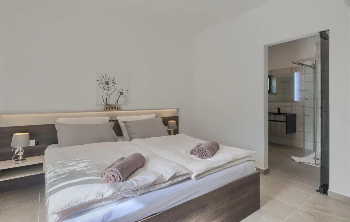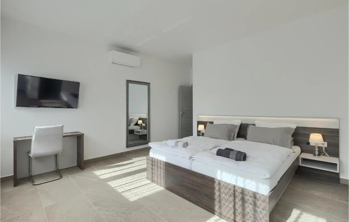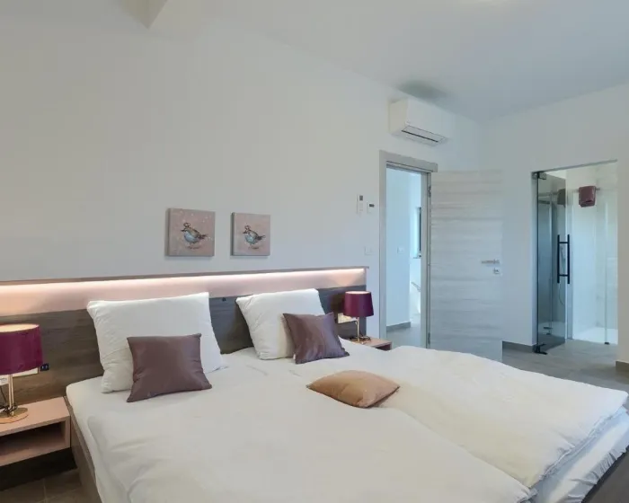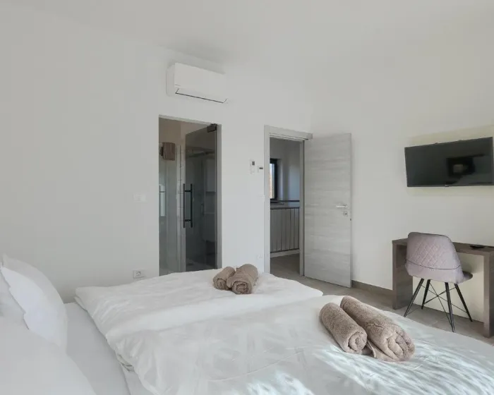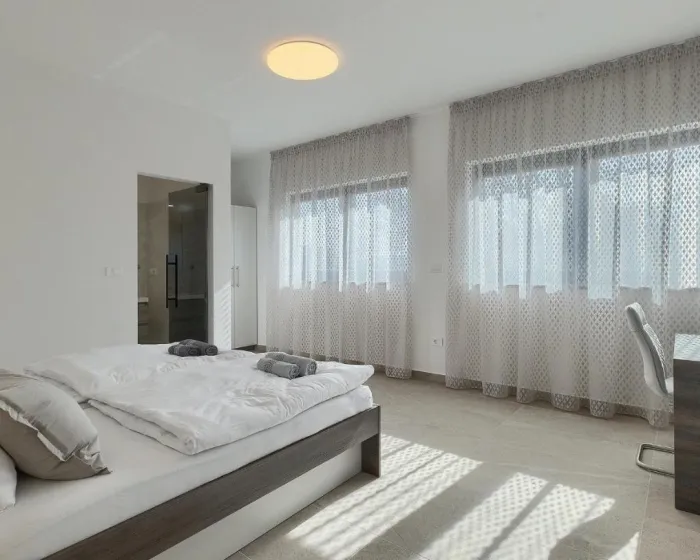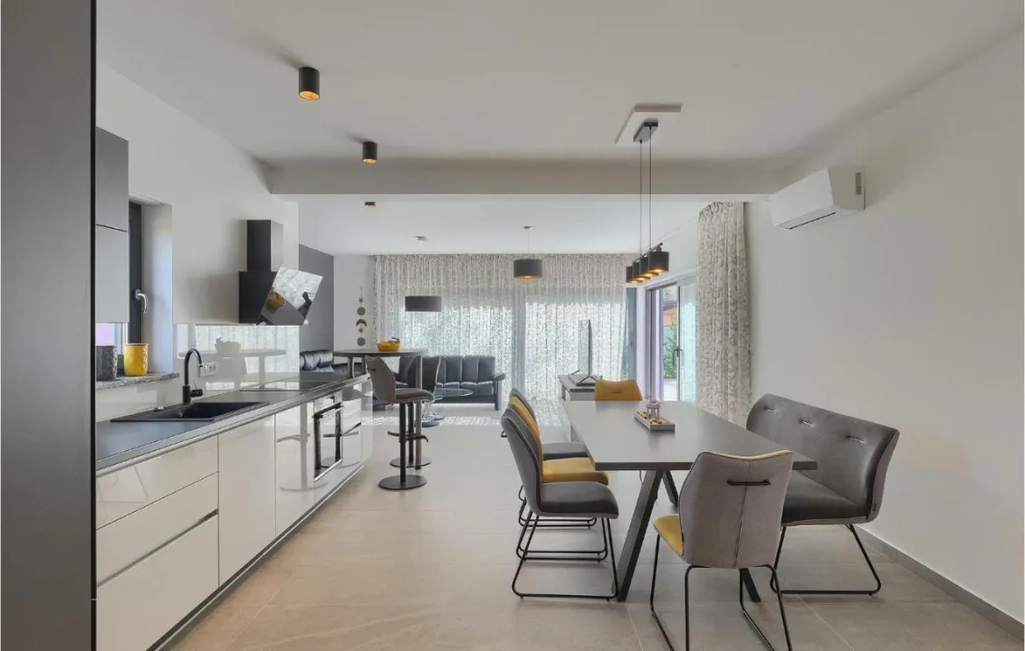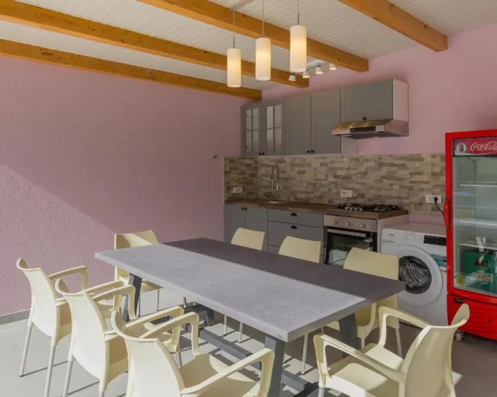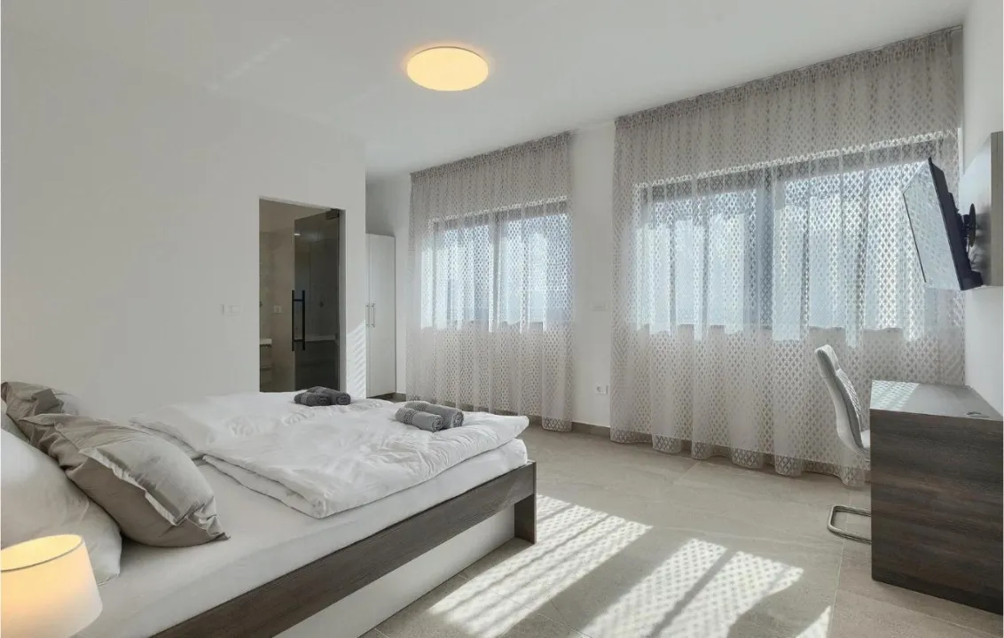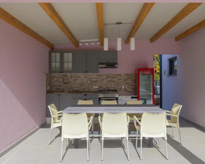 Prostrana kuća za odmor opremljena je sa 4 odvojene spavaće sobe, 4 kupatila, potpuno opremljenom kuhinjom sa trpezarijom i mašinom za pranje sudova, i dnevnim boravkom sa TV-om. Za dodatnu privatnost, smeštaj ima privatni ulaz.
