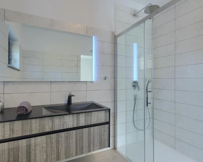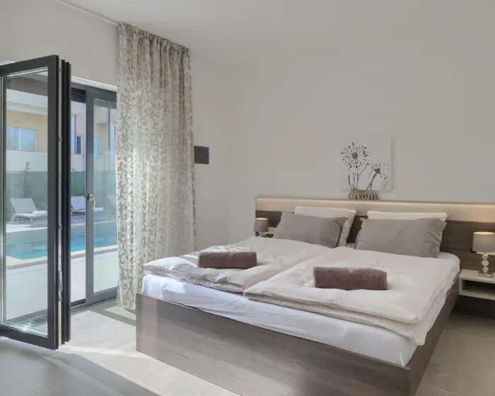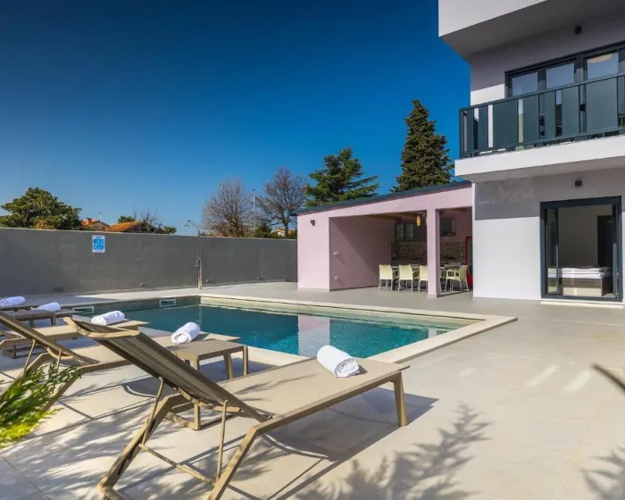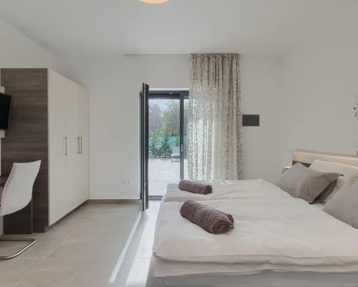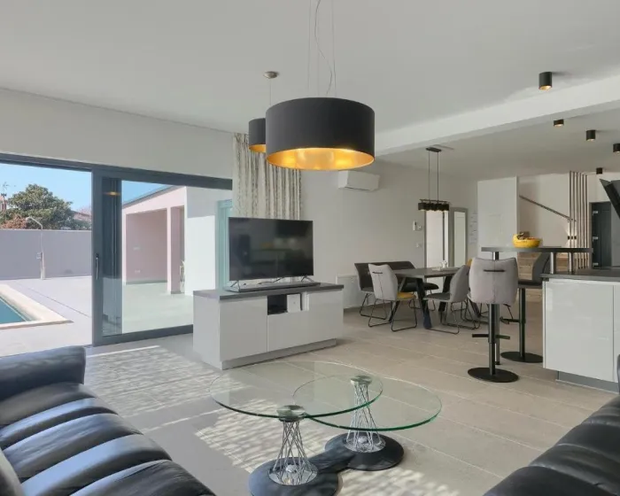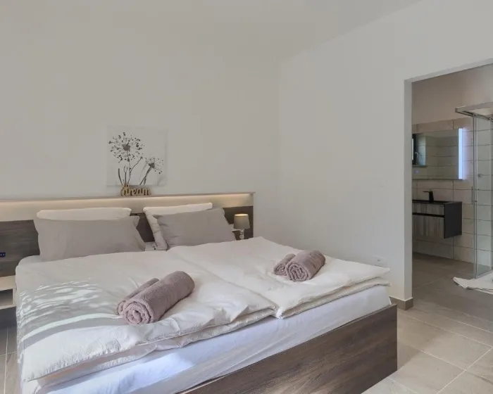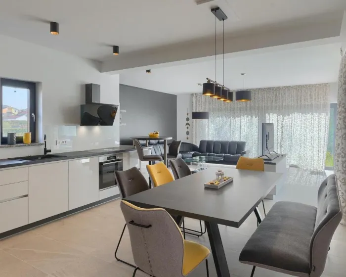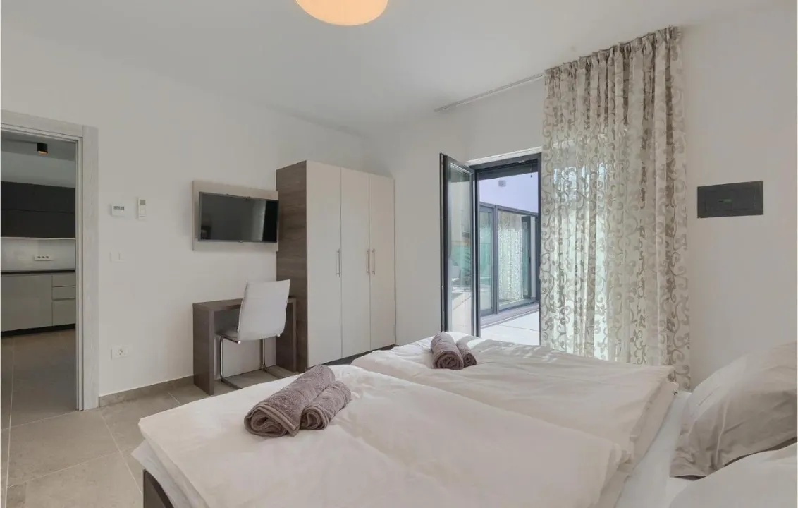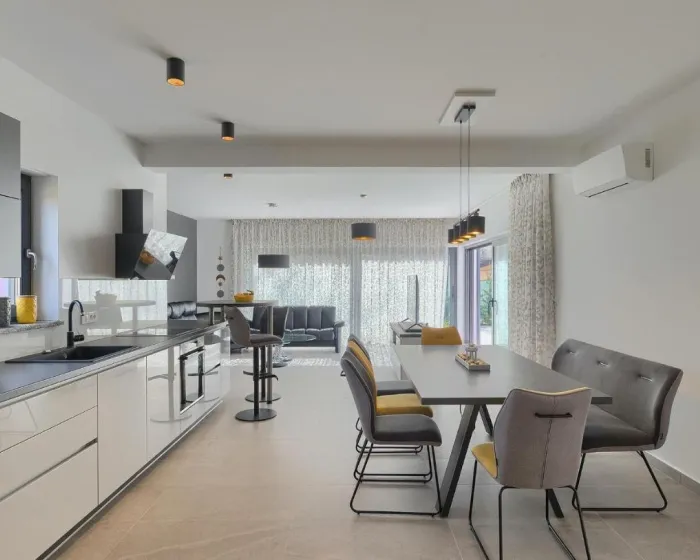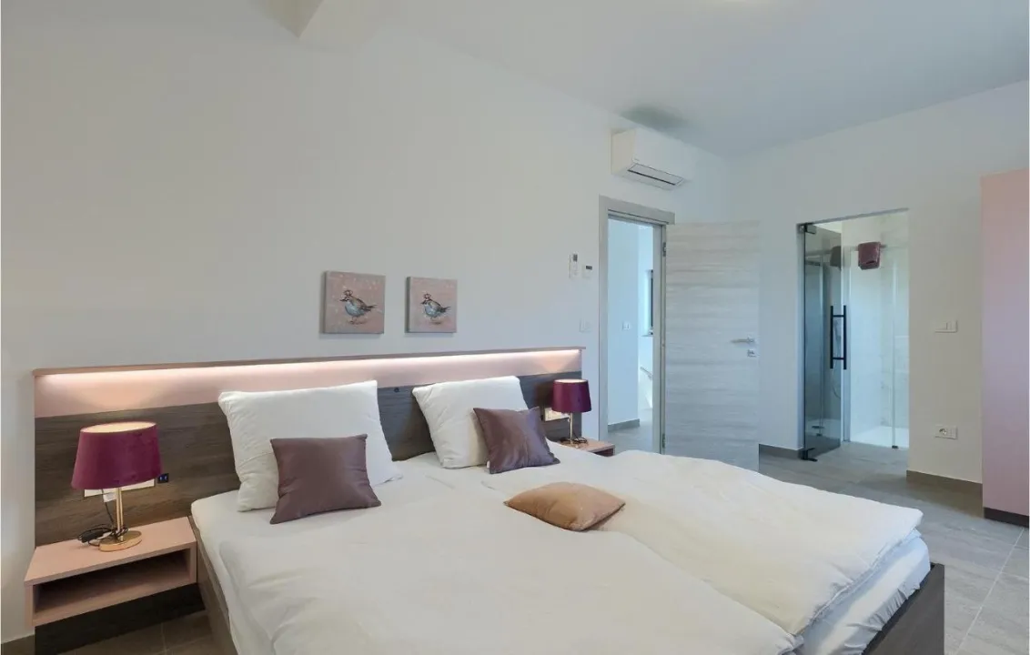 Prostrana kuća za odmor opremljena je sa 4 odvojene spavaće sobe, 4 kupatila, potpuno opremljenom kuhinjom sa trpezarijom i mašinom za pranje sudova, i dnevnim boravkom sa TV-om. Za dodatnu privatnost, smeštaj ima privatni ulaz.