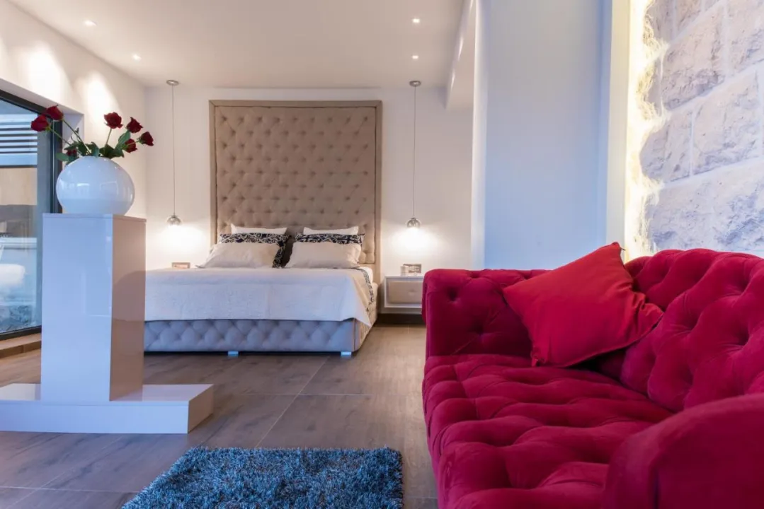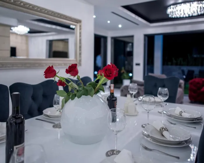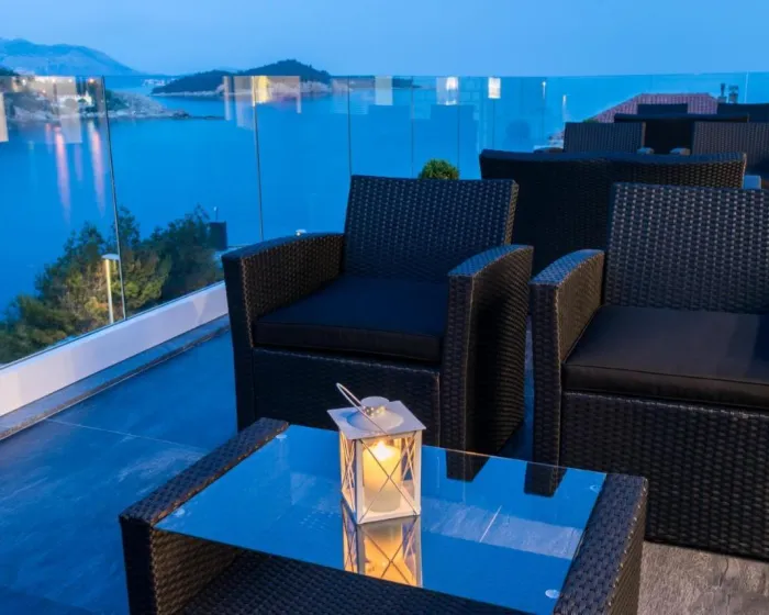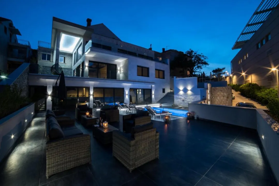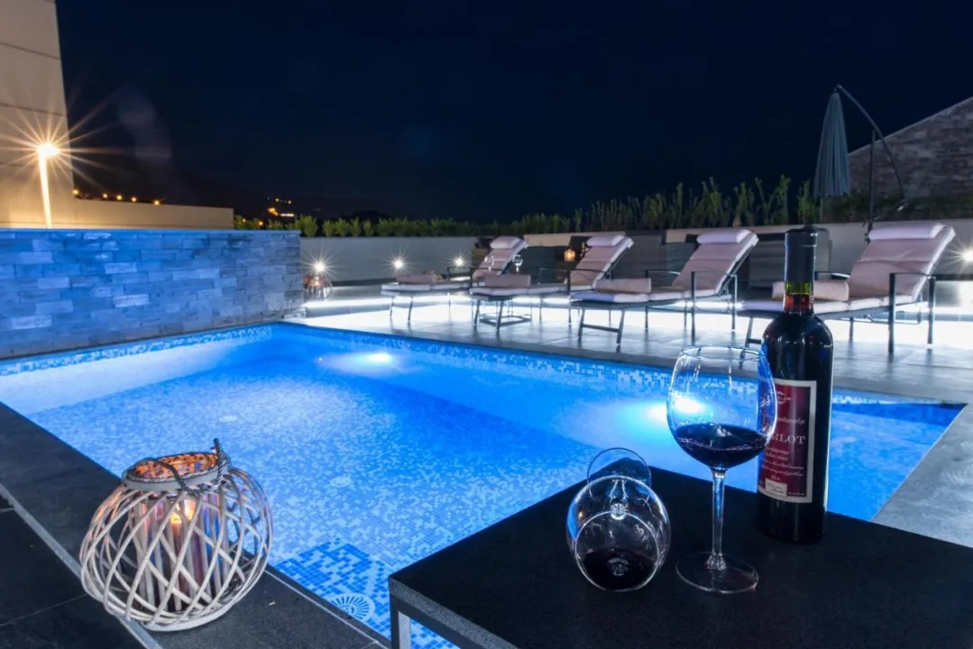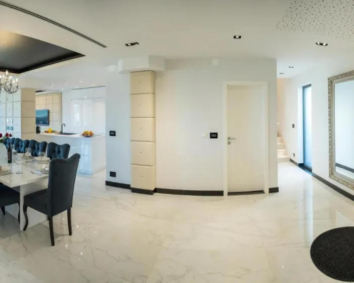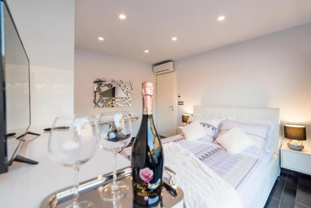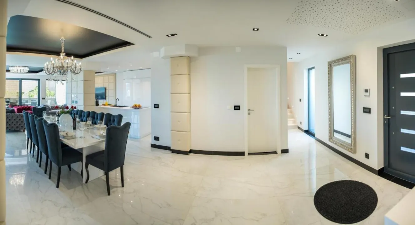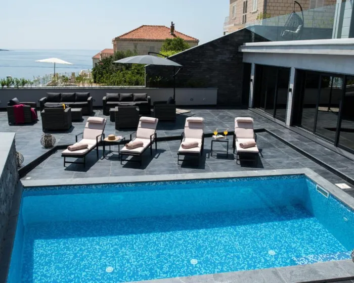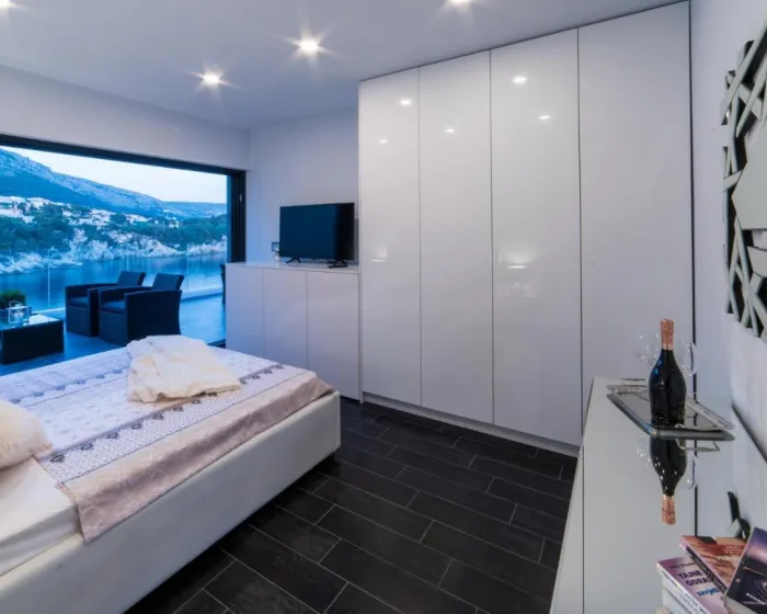 Prostrana vila ima 5 spavaćih soba, 3 kupatila, posteljinu, peškire, flat-screen TV sa satelitskim kanalima, trpezariju, potpuno opremljenu kuhinju i terasu sa pogledom na more. Privatni ulaz vodi goste u vilu, gde mogu uživati u vinu, šampanjcu i voću. Vila je za nepušače i zvučno izolovana.