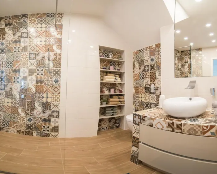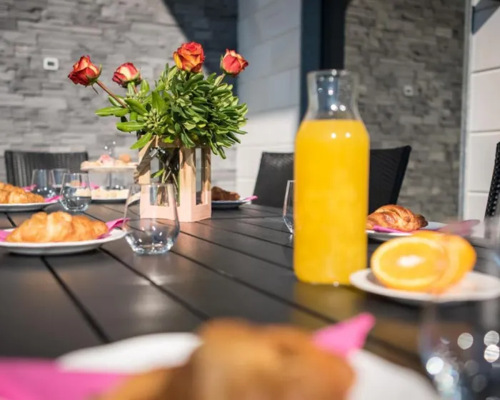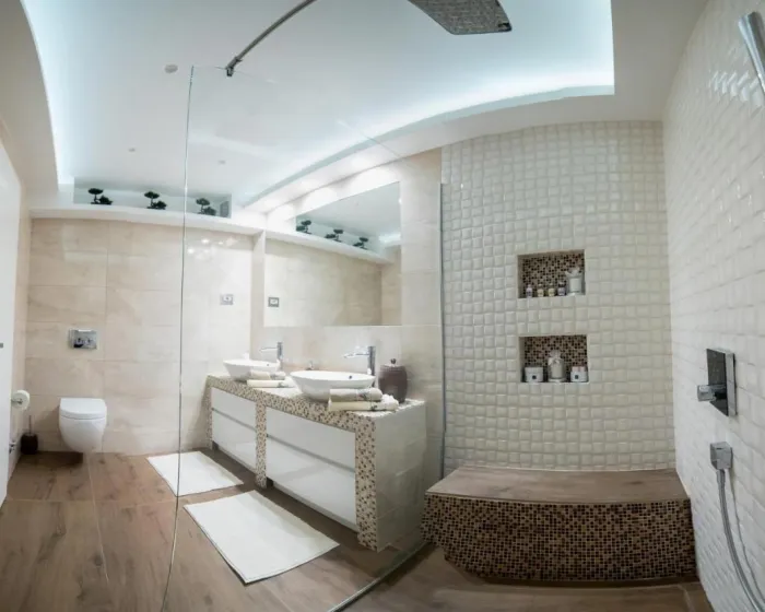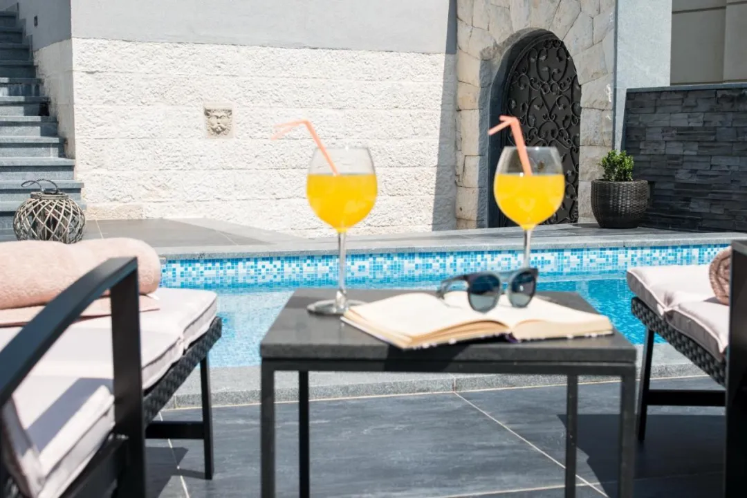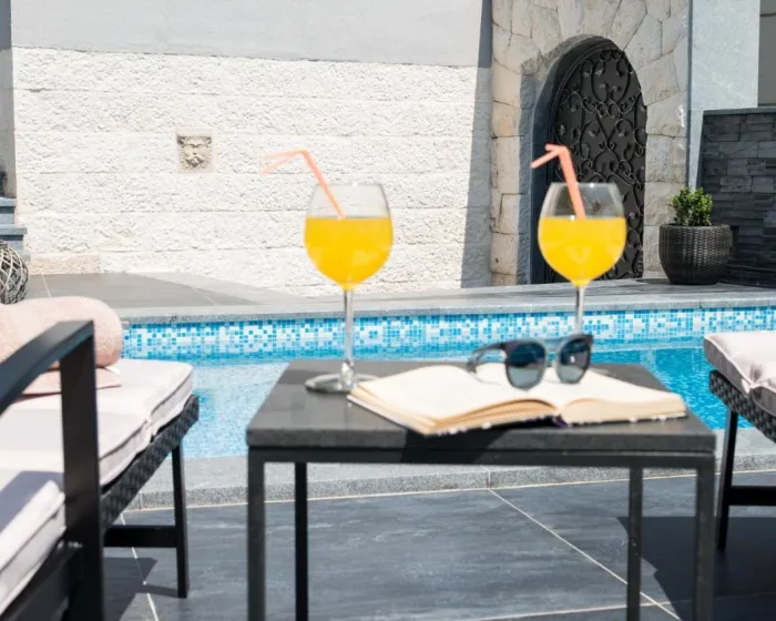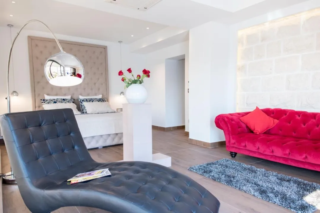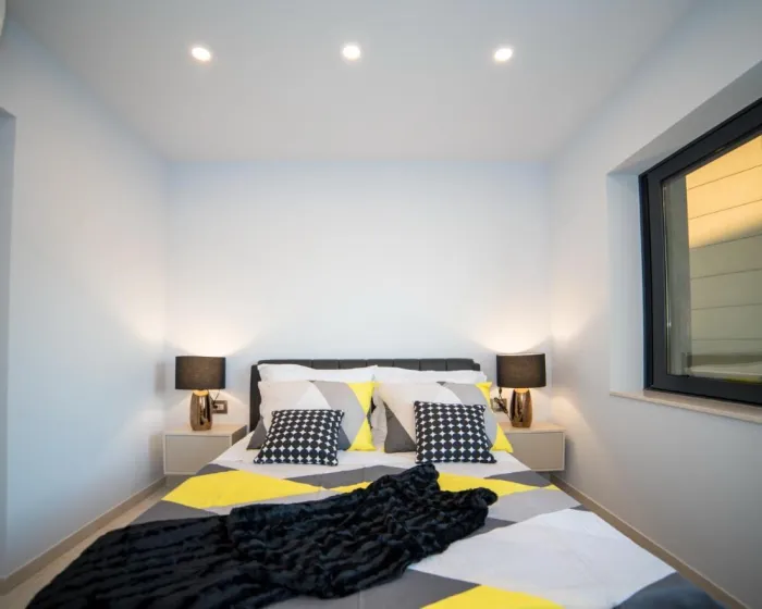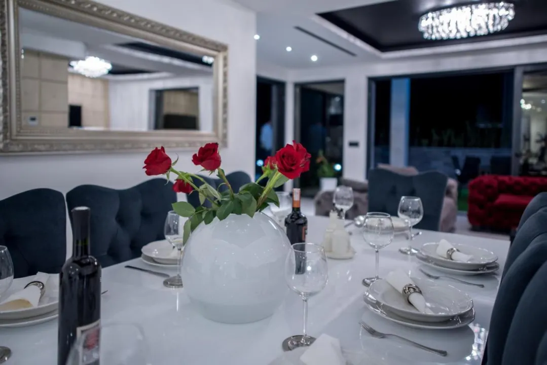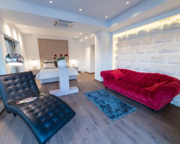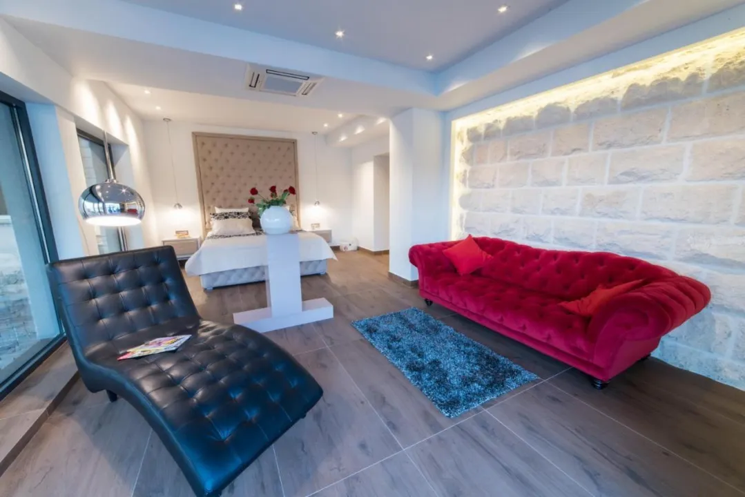 Prostrana vila ima 5 spavaćih soba, 3 kupatila, posteljinu, peškire, flat-screen TV sa satelitskim kanalima, trpezariju, potpuno opremljenu kuhinju i terasu sa pogledom na more. Privatni ulaz vodi goste u vilu, gde mogu uživati u vinu, šampanjcu i voću. Vila je za nepušače i zvučno izolovana.