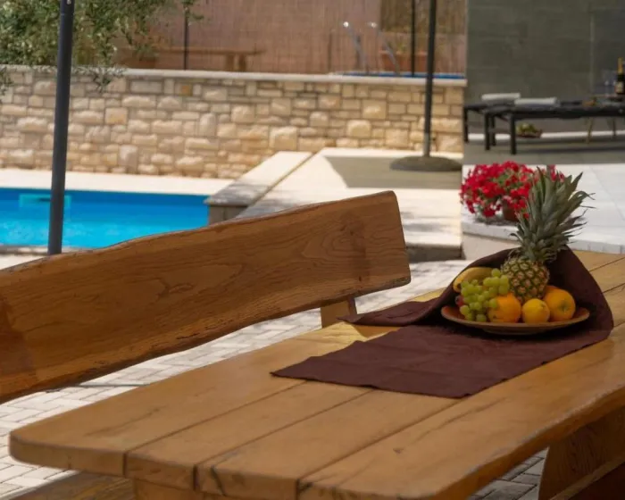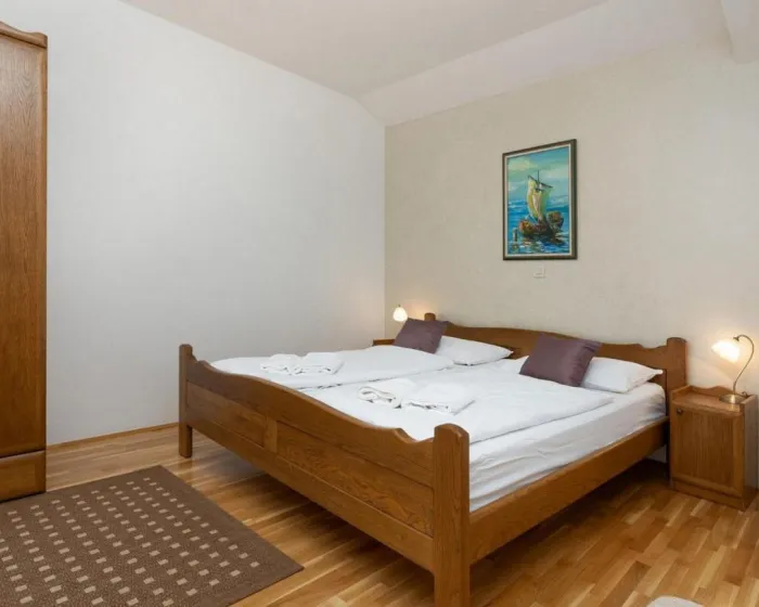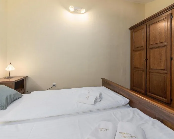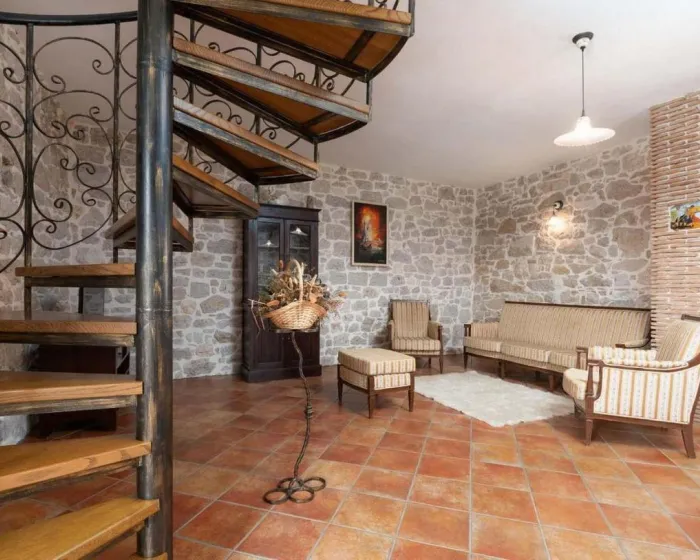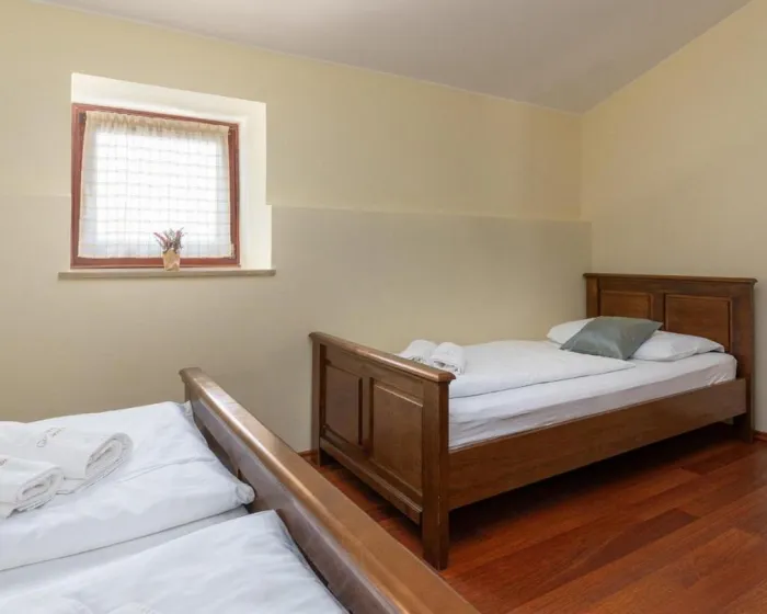 Klimatizovana vikendica sastoji se od 4 spavaće sobe, 2 dnevna boravka, potpuno opremljene kuhinje sa mašinom za pranje sudova i aparatom za kafu, kao i 2 kupatila sa tušem. U smeštaju se nalazi i kamin.